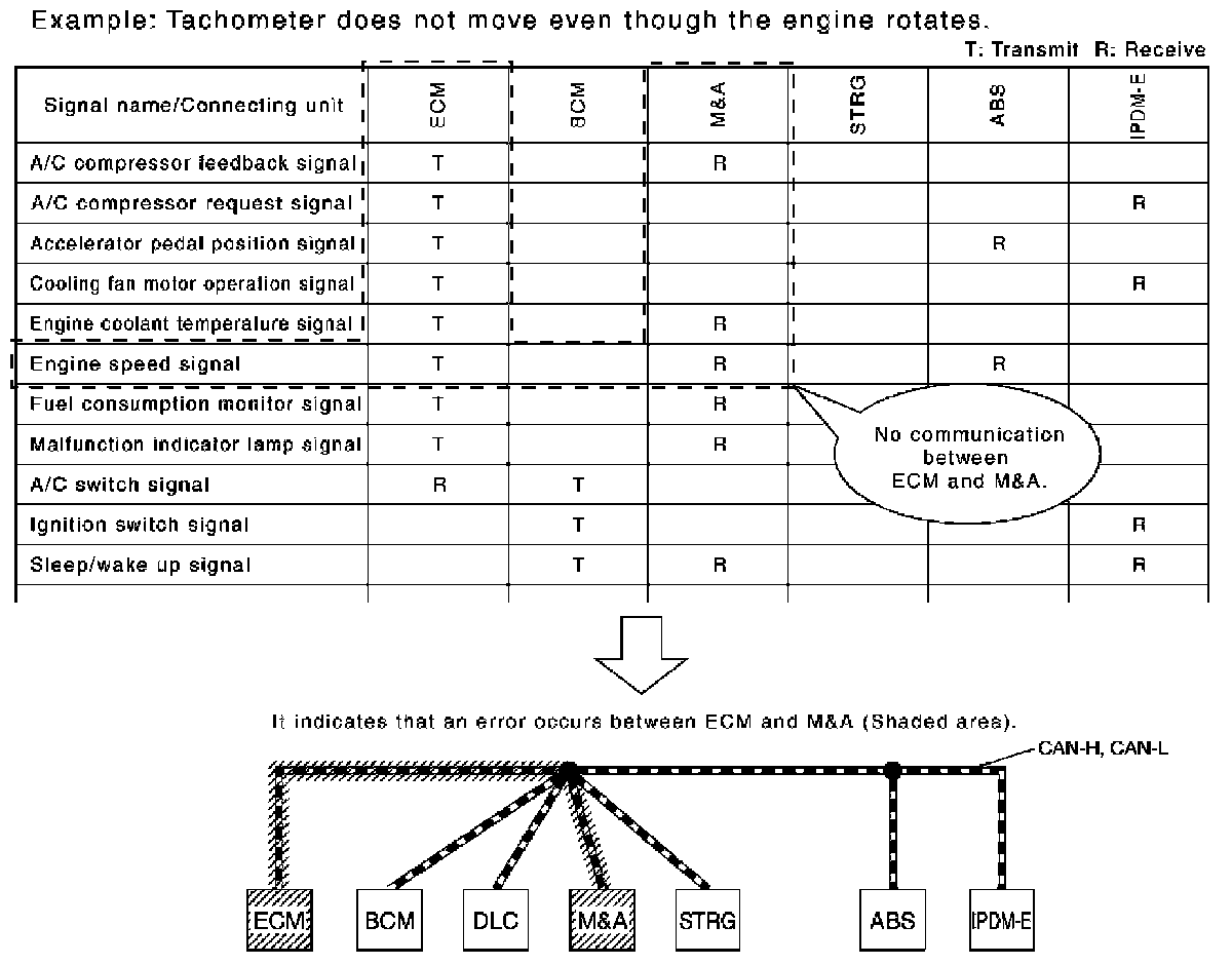 How to Use CAN Communication Signal ChartThe CAN communication signal chart lists the signals needed for trouble diagnosis. It is useful for detecting the root cause by finding a signal related to the symptom, and by checking transmission and reception unit.