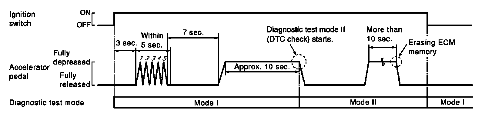 - Always ECM returns to Diagnostic Test Mode I after ignition switch is turned OFF.
