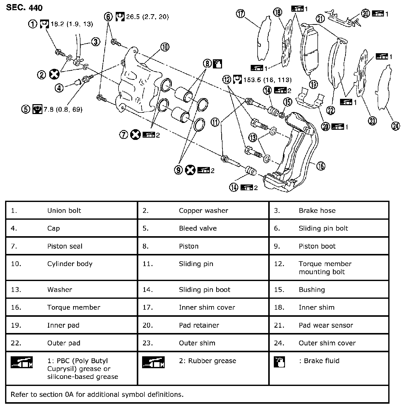 Component- THE LARGE ILLUSTRATIONS are exploded views (see the following) and contain tightening torques, lubrication points, section number of the PARTS CATALOG (e.g. SEC. 440) and other information necessary to perform repairs. The illustrations should be used in reference to service matters only. When ordering parts, refer to the appropriate PARTS CATALOG.