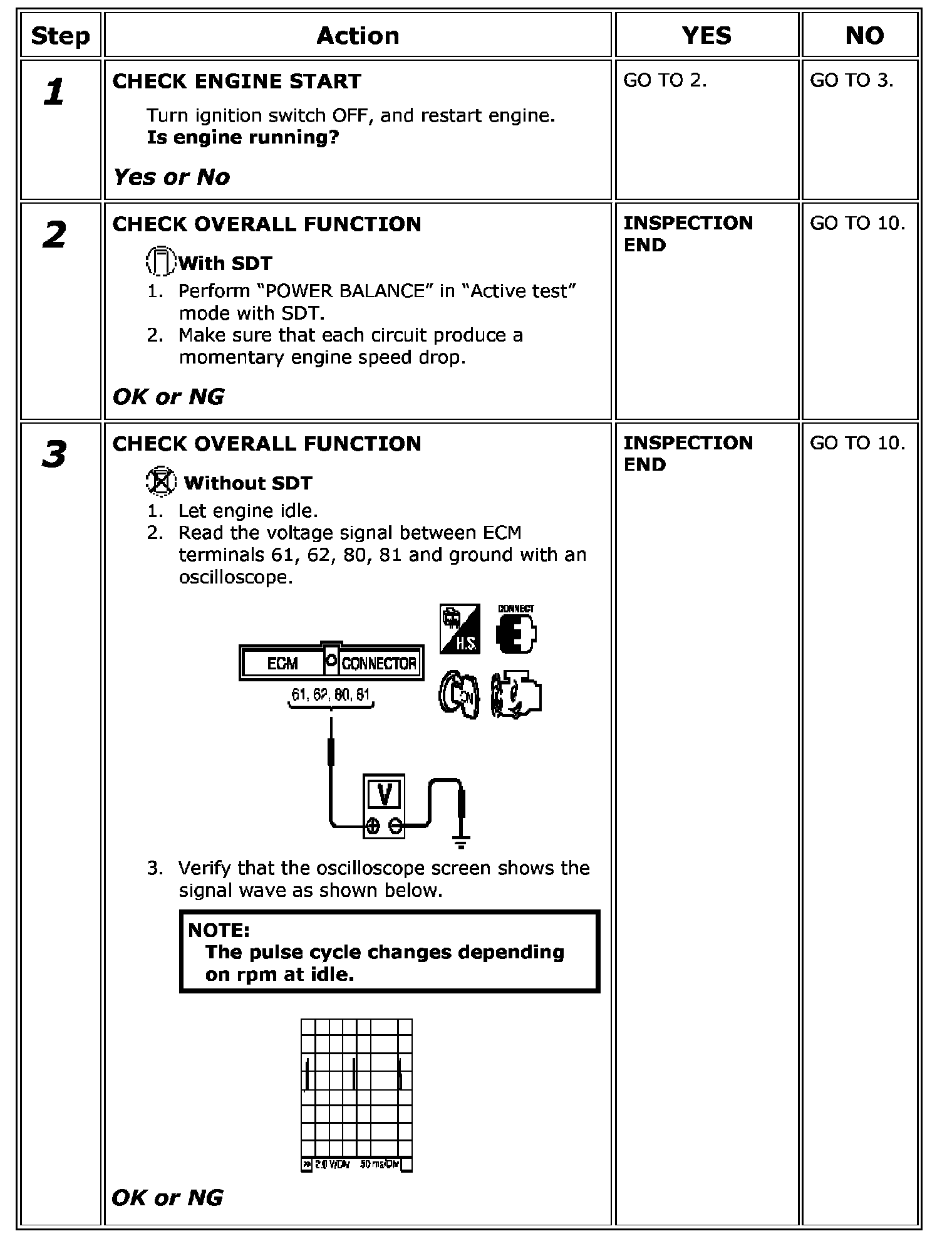 17. If NG, Replace ignition coil with power transistor.