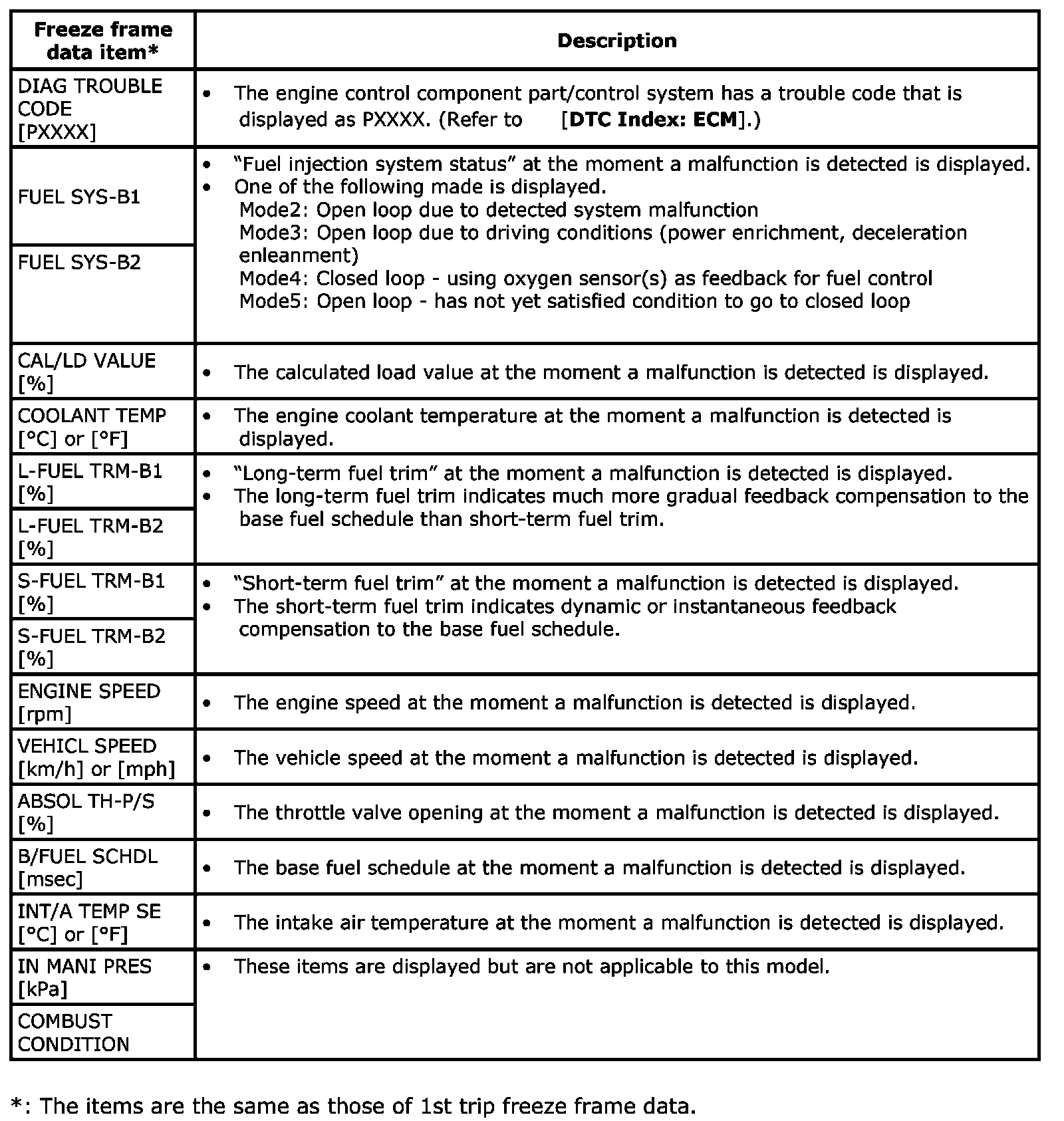 Freeze Frame Data and 1st Trip Freeze Frame Data