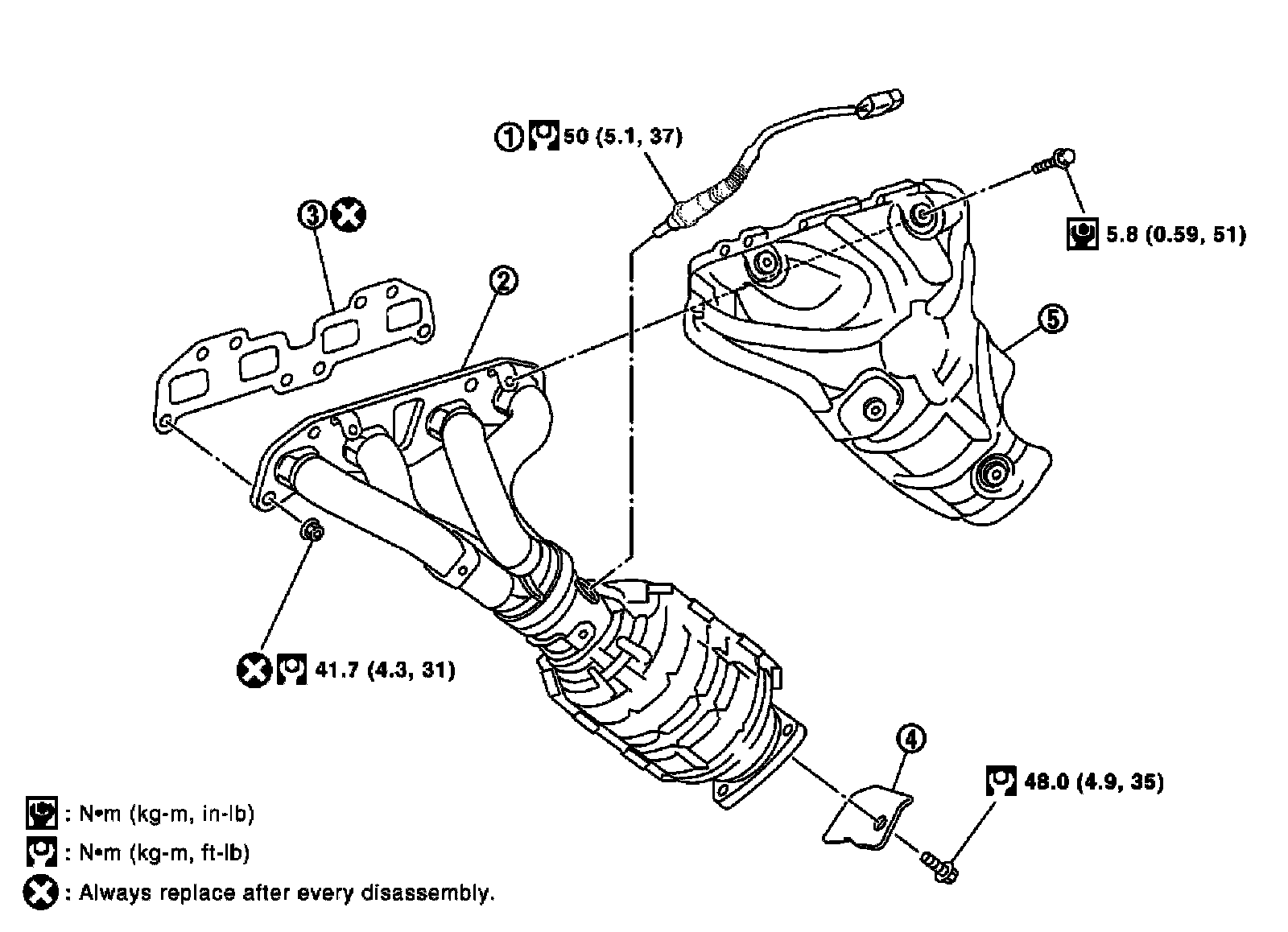 Exhaust Manifold and Three Way Catalyst: Exploded View