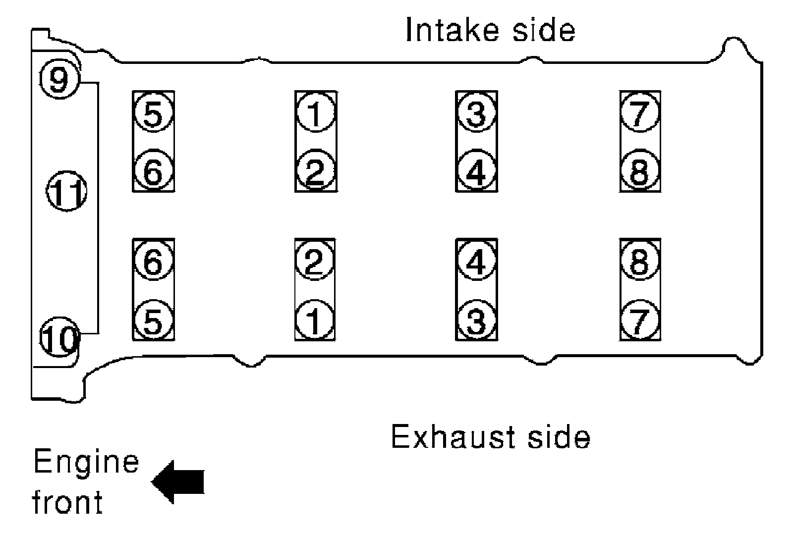 Step 4 (bolts 1 - 11): 10.4 Nm (1.1 kg-m, 92 in-lb)