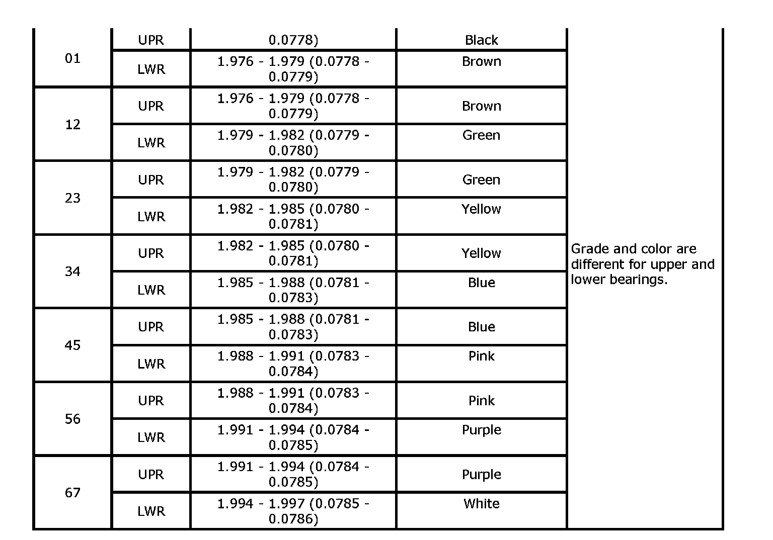 Grade No. Y 58.965 - 58.966 mm (2.3215 - 2.3215 in)