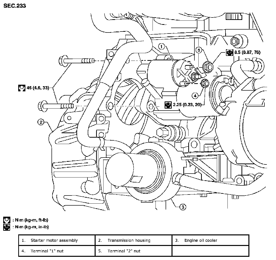 Starter Motor: Removal and Installation (QR25DE)REMOVAL