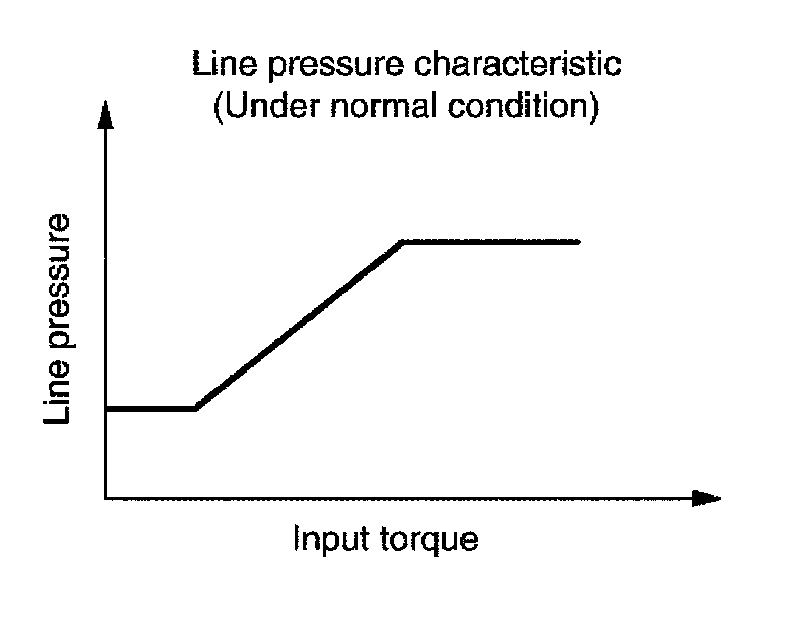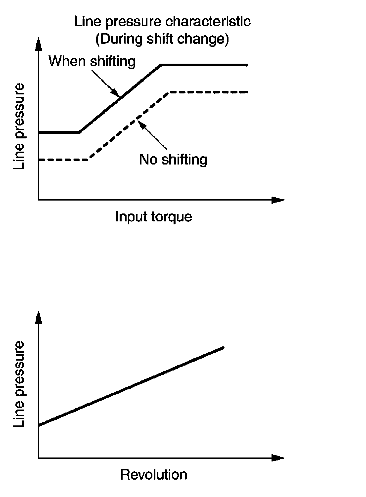 The necessary and adequate line pressure for shift change is set. For this reason, line pressure pattern setting corresponds to input torque and gearshift selection. Also, line pressure characteristic is set according to engine speed, during engine brake operation.