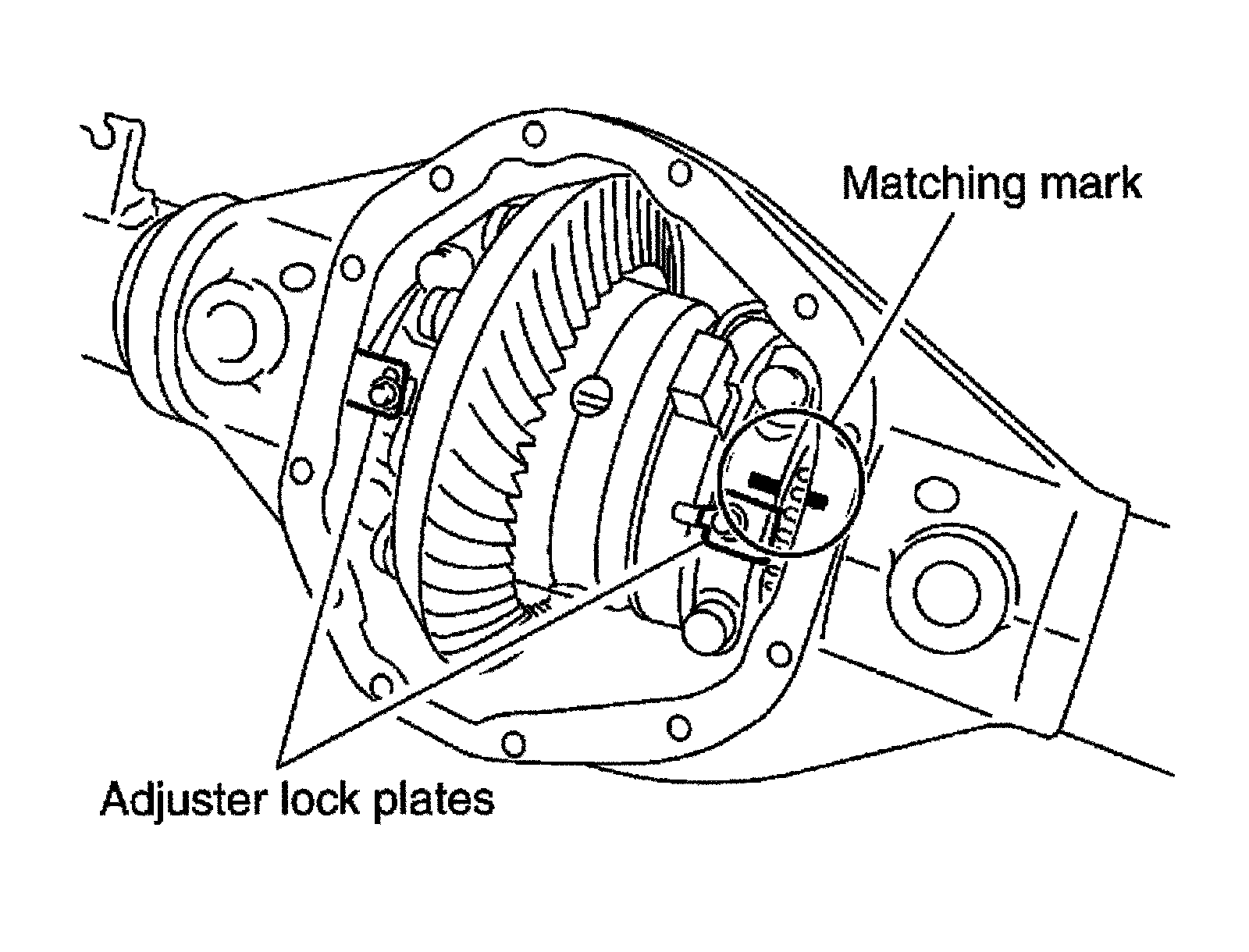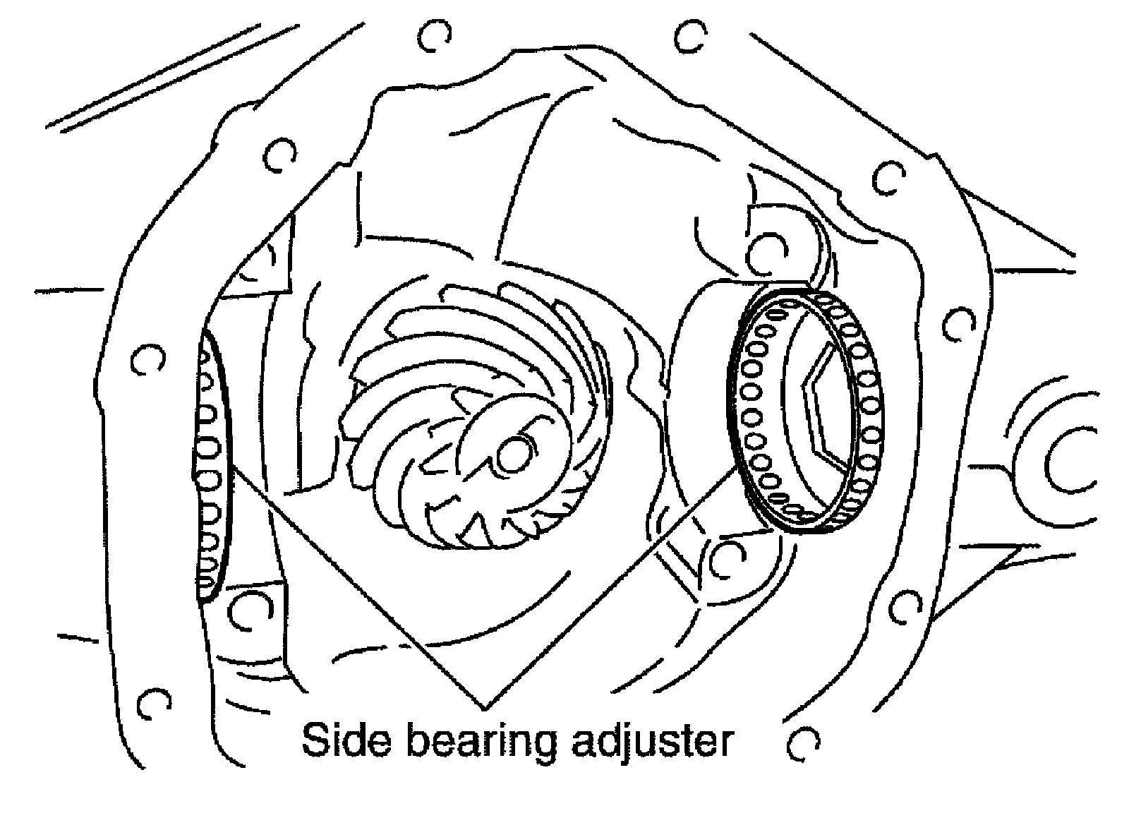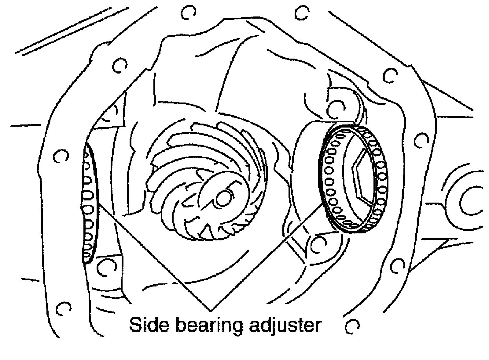 Do not tighten at this point. This allows further tightening of side bearing adjusters.