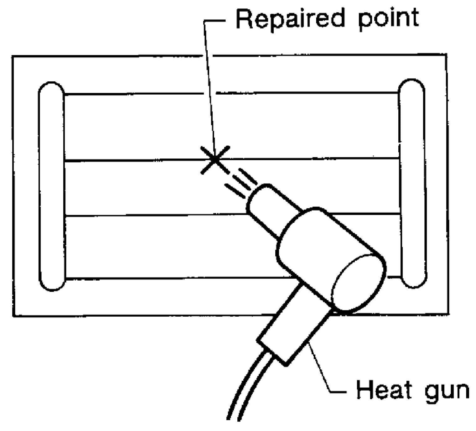 If a heat gun is not available, let the repaired area dry for 24 hours.