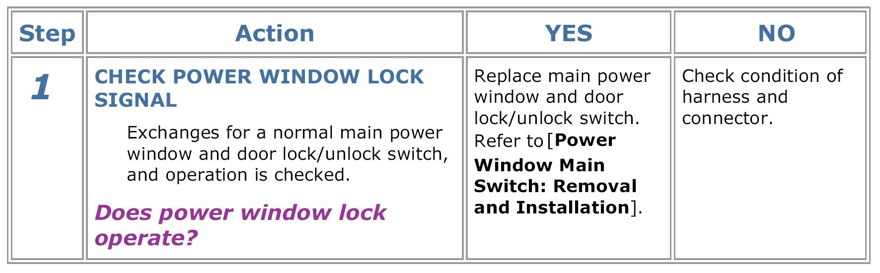 Power Window Lockout Switch: Testing and Inspection