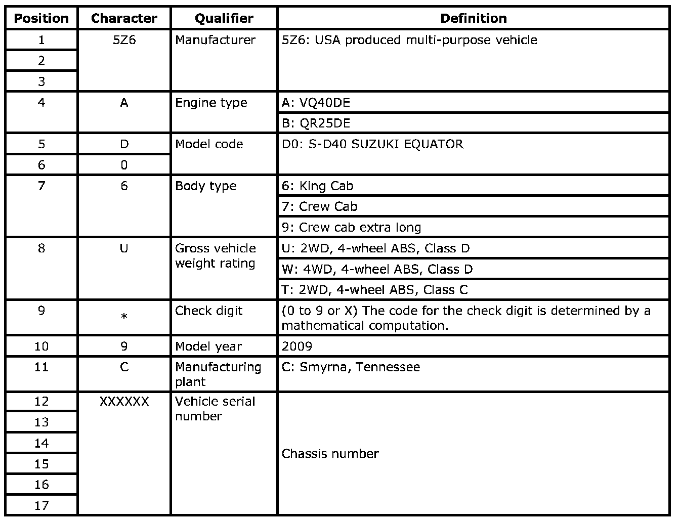 VEHICLE IDENTIFICATION NUMBER ARRANGEMENT