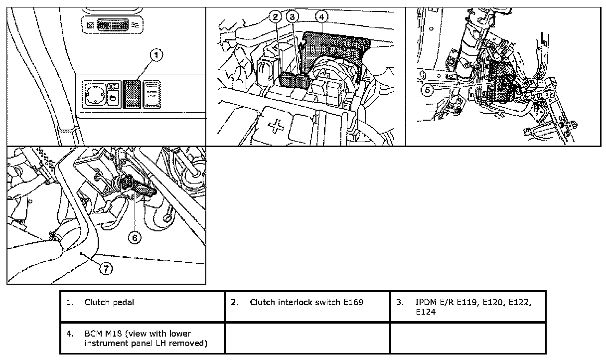 Starting System: Component Parts Location [M/T without Clutch Interlock Cancel System]