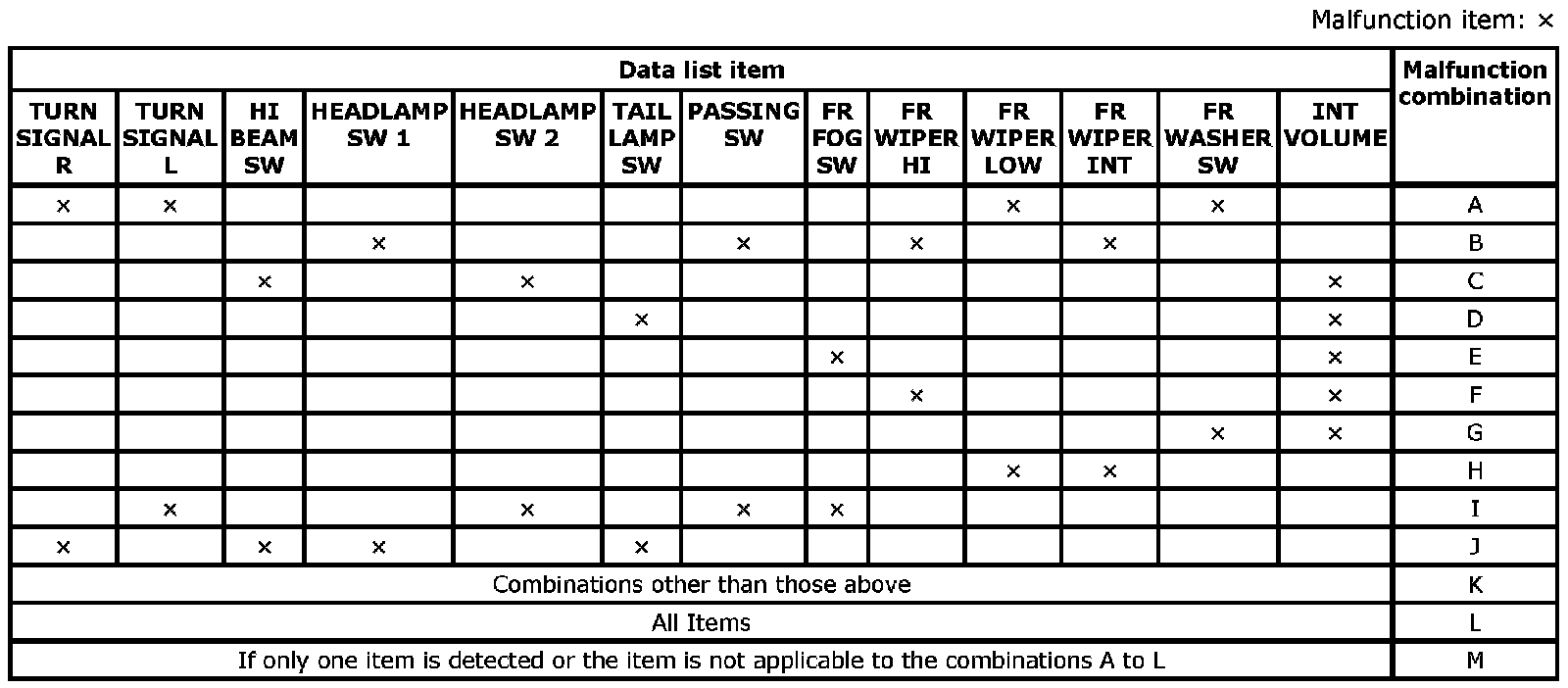 2. Check the malfunction combinations.