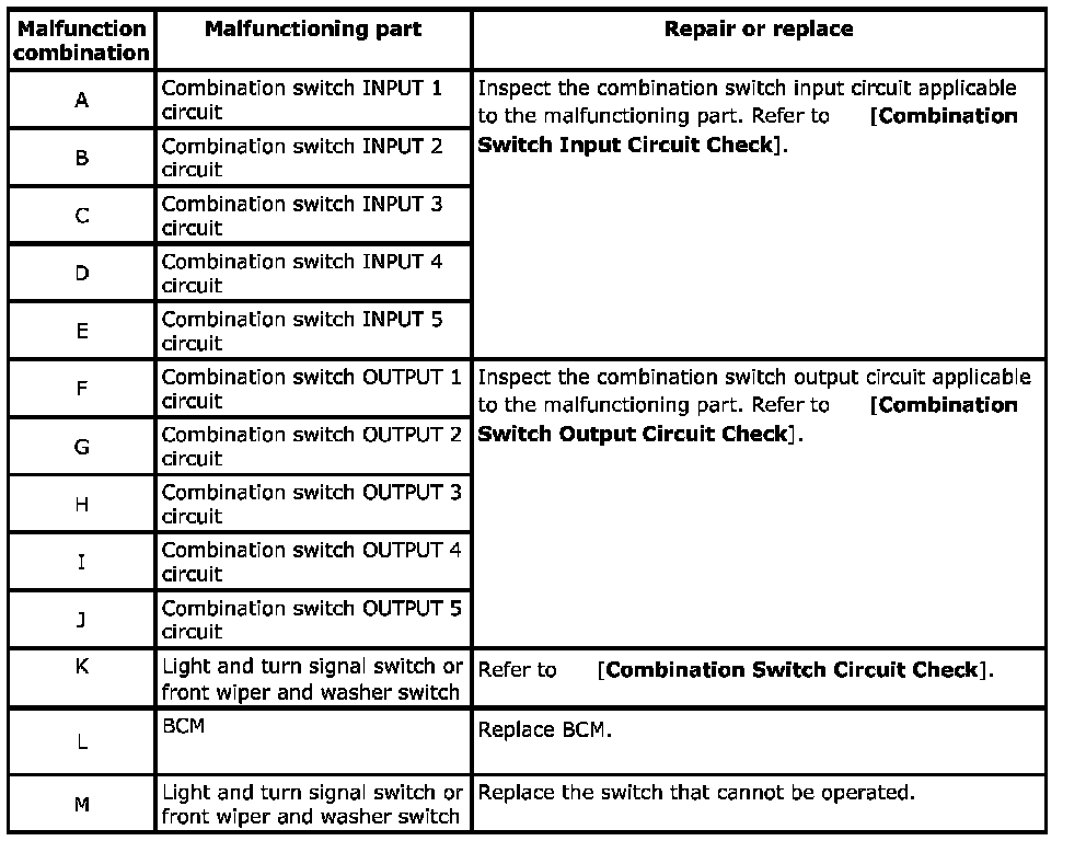 Combination Switch System Symptoms: Symptom Table