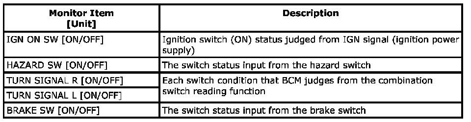 SDT Function (BCM - Flasher) - Data List: