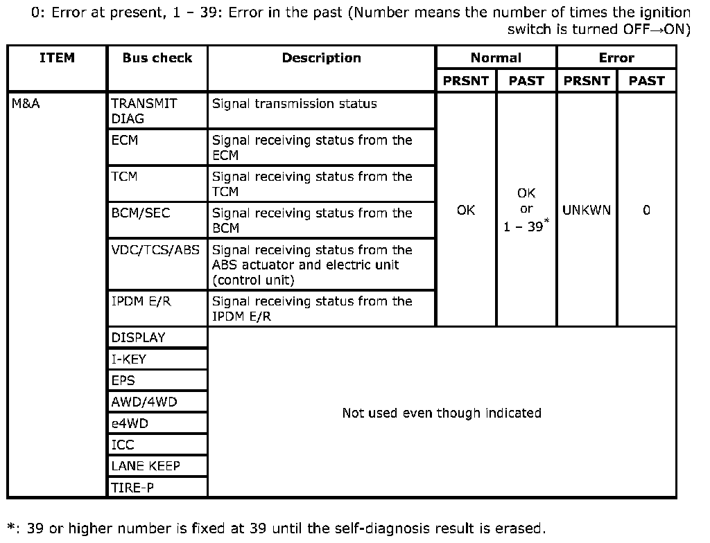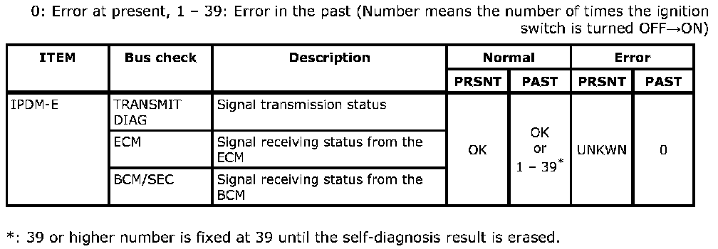 0: Error at present, 1 - 39: Error in the past (Number means the number of times the ignition switch is turned OFF -> ON)