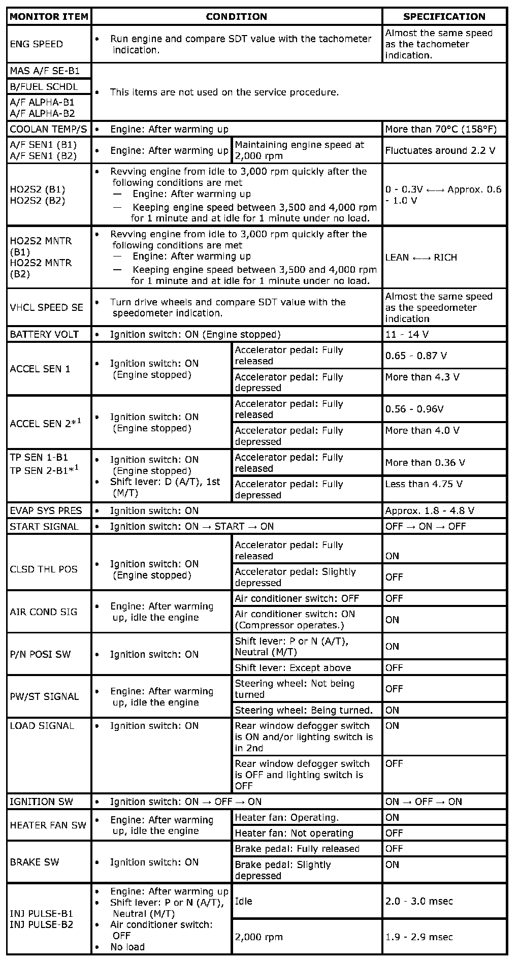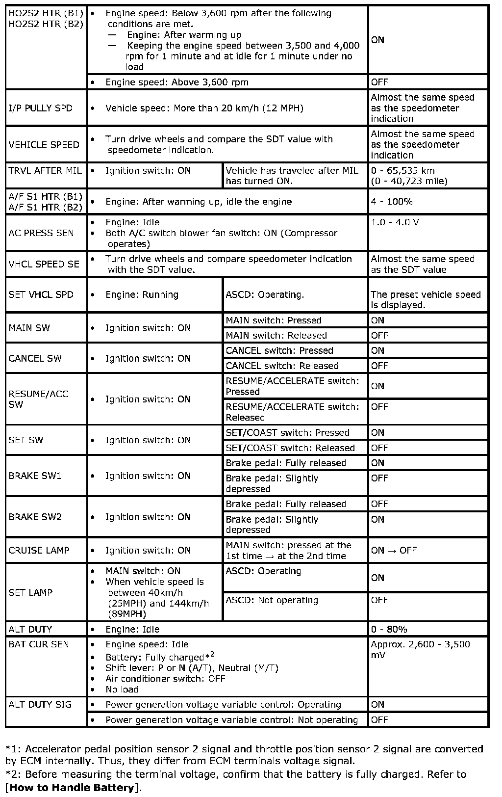- Specification data are output/input values which are detected or supplied by the ECM at the connector.