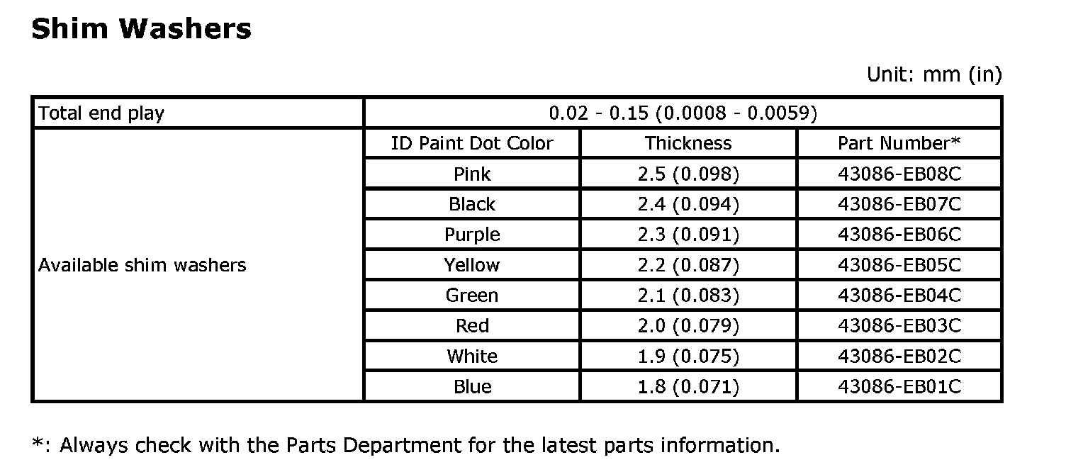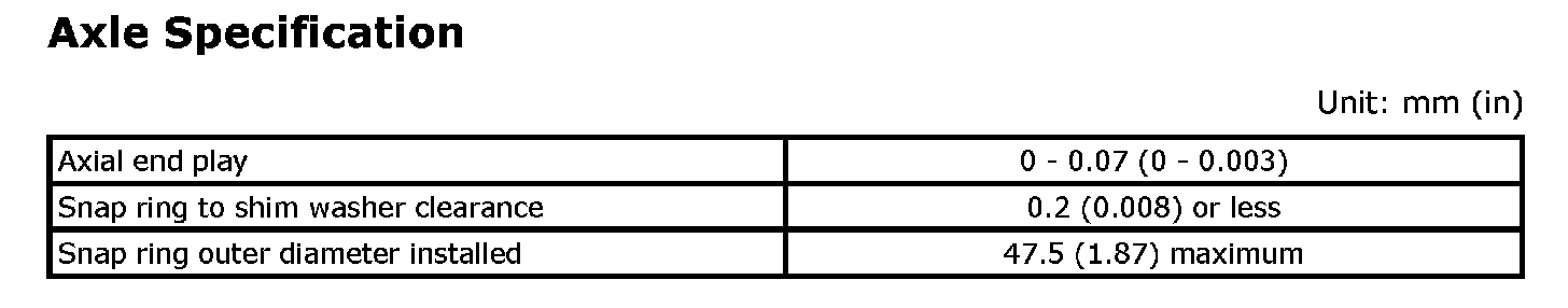 Axle Specification