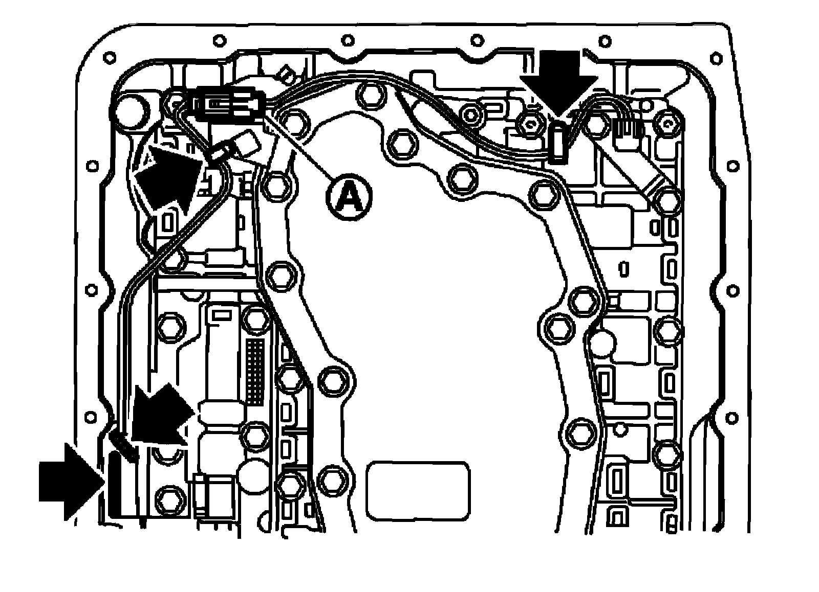 ^ Hang down revolution sensor harness toward outside so as not to disturb installation of control valve with TCM.