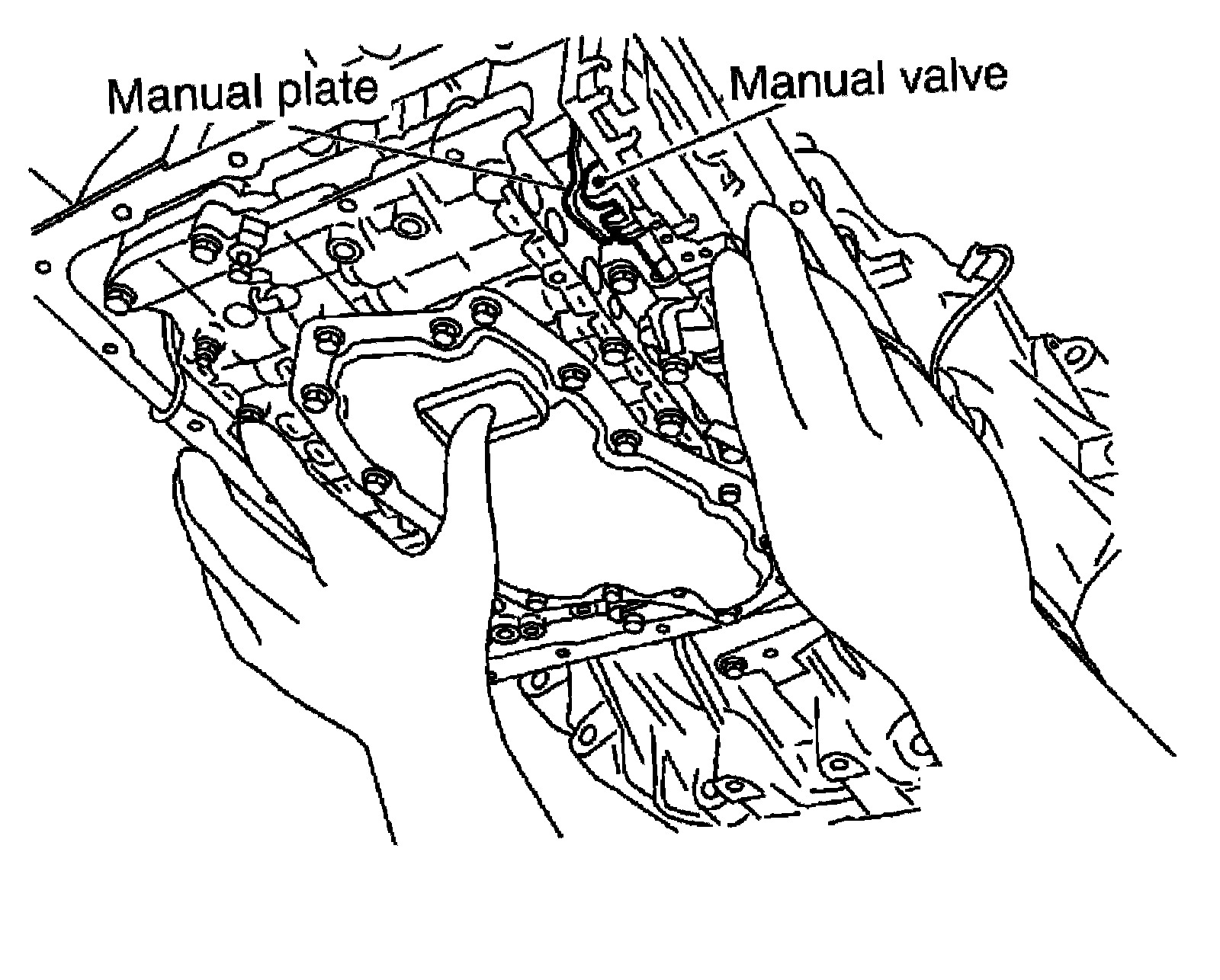 ^ Assemble it so that manual valve cutout is engaged with manual plate projection.