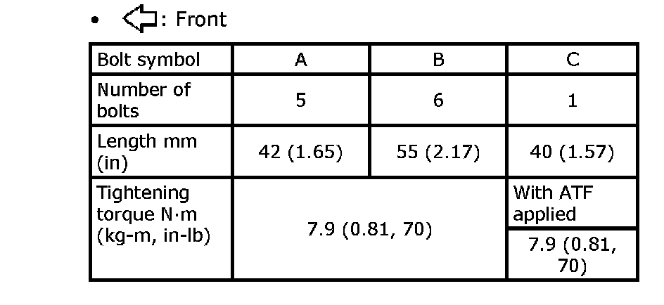 11) Remove bolts (A), (B) and (C) from control valve with TCM.