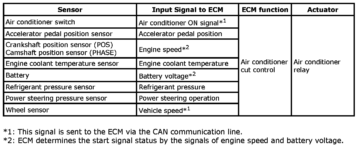 Air Conditioning Cut Control: Input/Output Signal Chart: