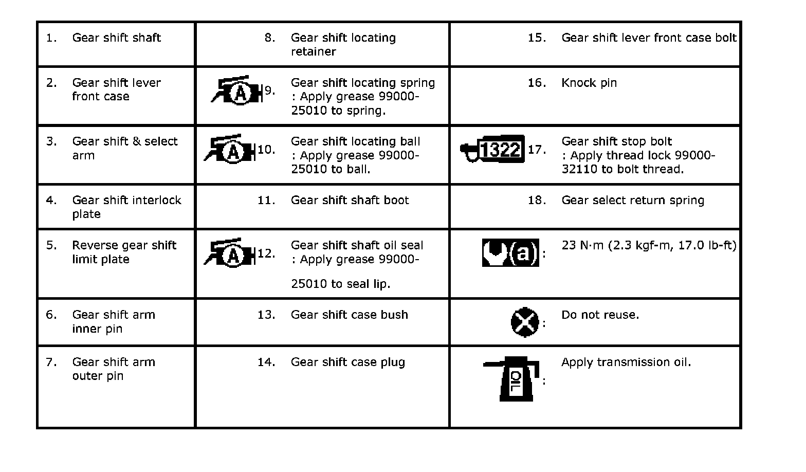Gear Shift Lever Front Case Assembly Components