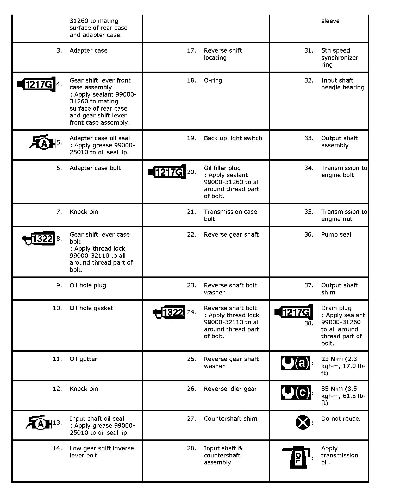 Manual Transmission Assembly Components