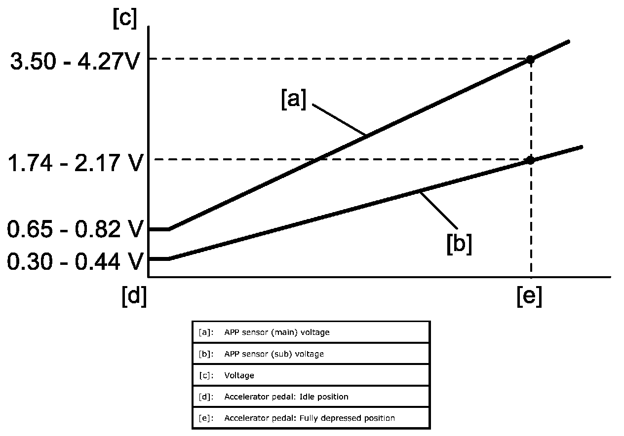 If faulty condition is found, replace accelerator pedal assembly (incorporating APP sensor assembly).