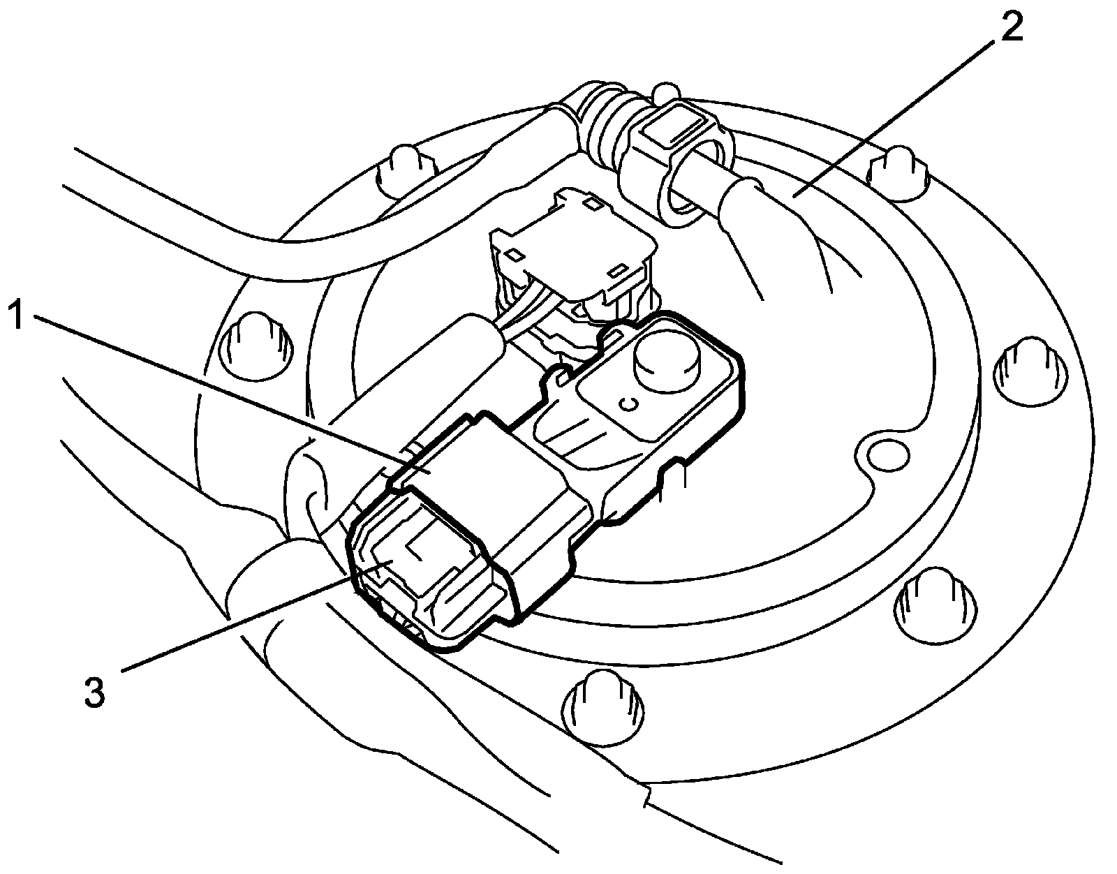 2. Disconnect connector (3) from fuel tank pressure sensor.