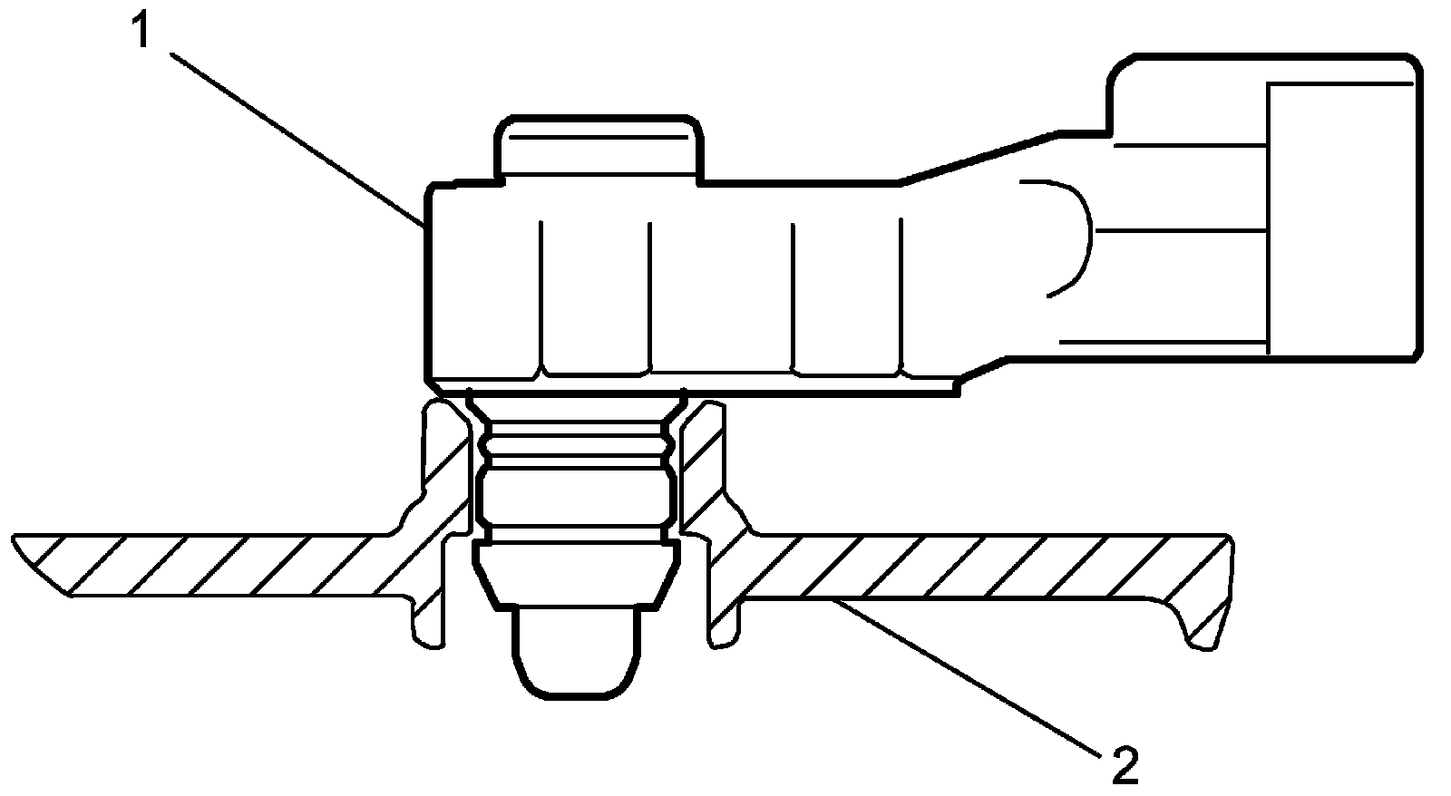- Install fuel tank pressure sensor (1) to fuel pump assembly (2) securely as shown in figure.