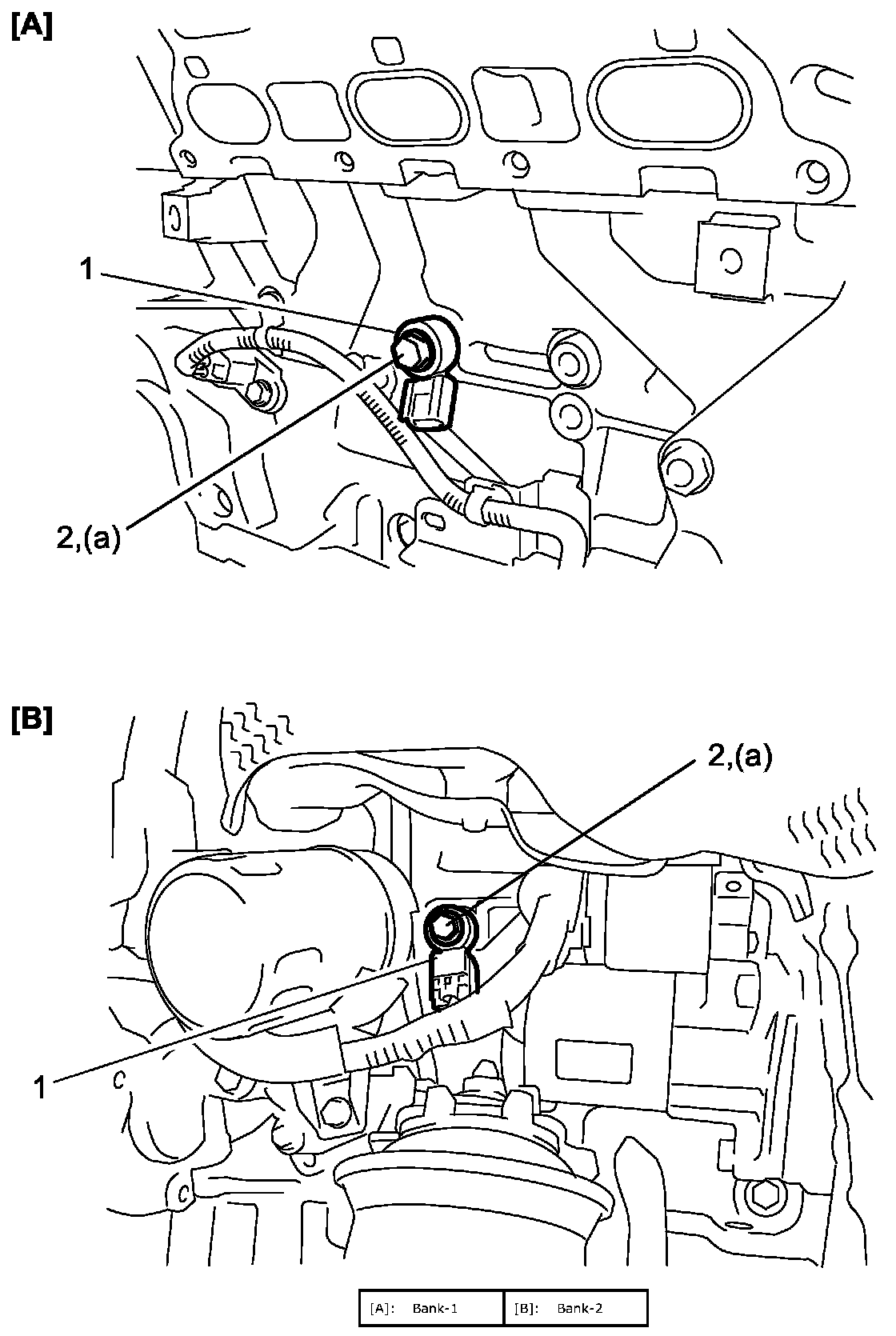 - Tighten knock sensor bolt (2) to specified torque.