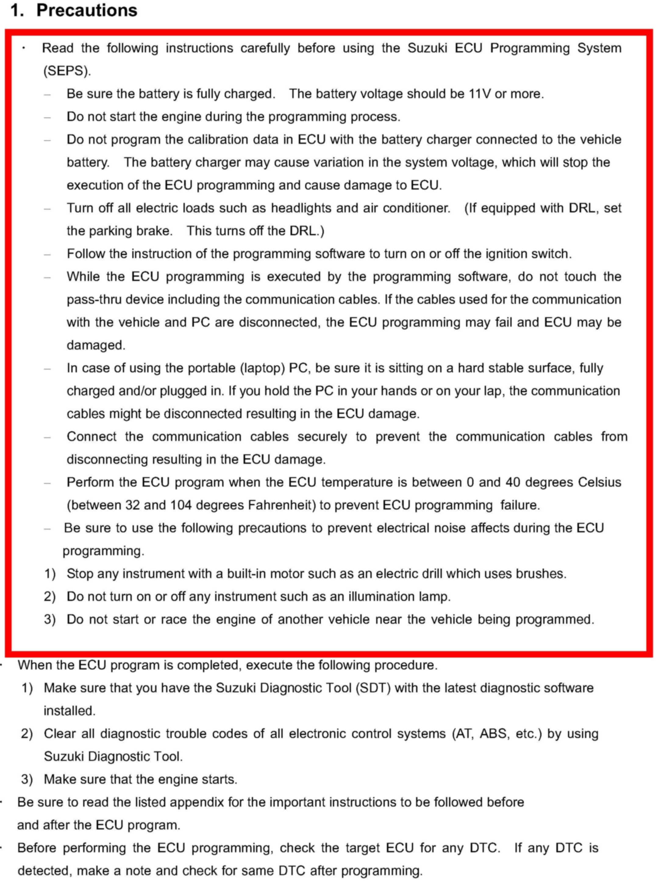 ECM fails to program within a 7 minute time frame and Suzuki ECU Programming System (SEPS) shows an error code.