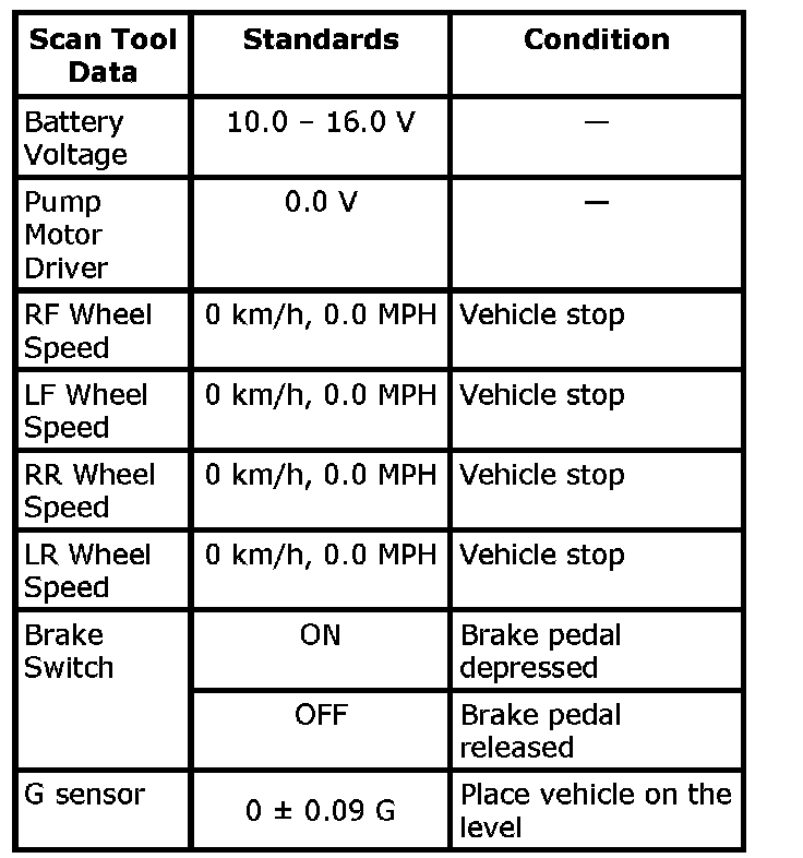 The parameter data below are values measured with the scan tool when the normally operating vehicle is under the following conditions. When taking measurements for comparison by using the scan tool, be sure to check that the vehicle is under the following conditions.