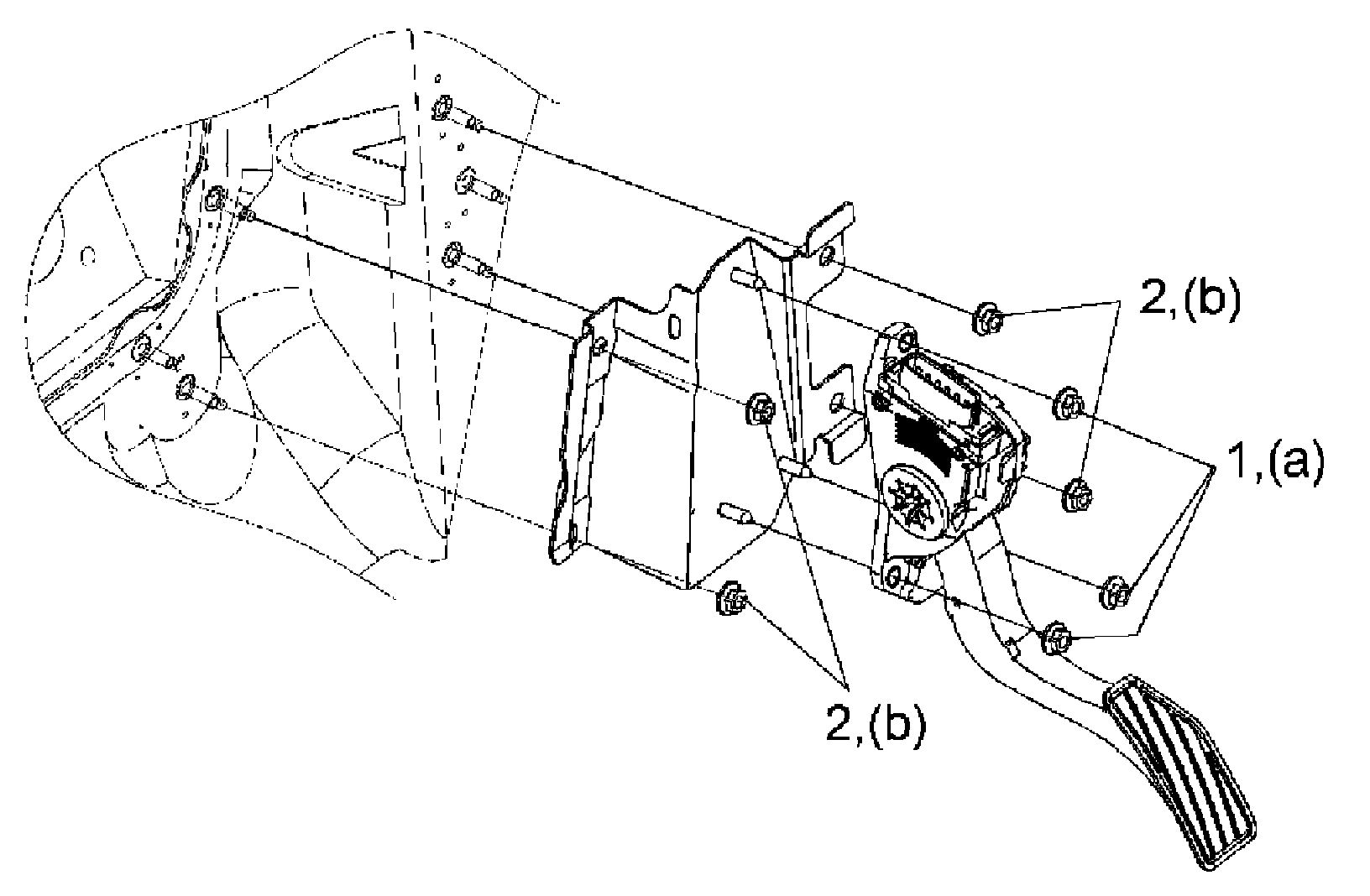 Accelerator pedal assembly bracket nut (b): 6.0 N.m (0.61 Kg-m, 4.5 lbf-ft)