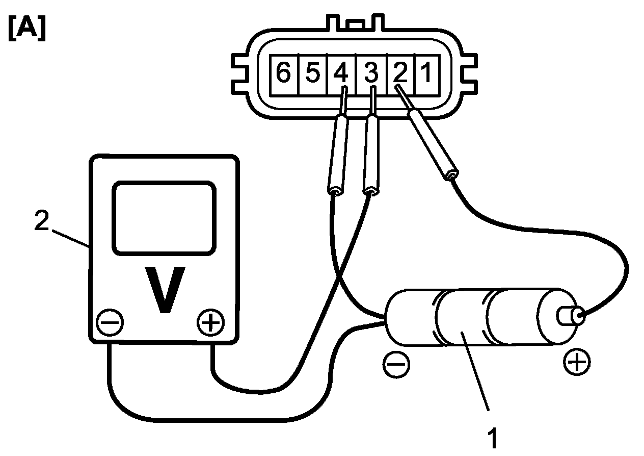 b. Connect voltmeter (2) and batteries to APP sensor as shown in figure.