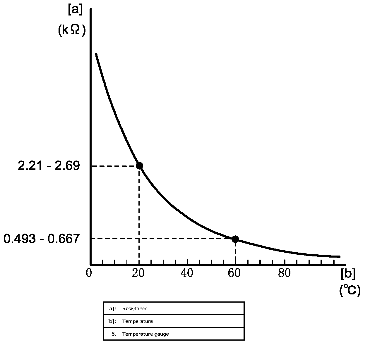 20 °C (68 °F): 2.21 - 2.69 kohms