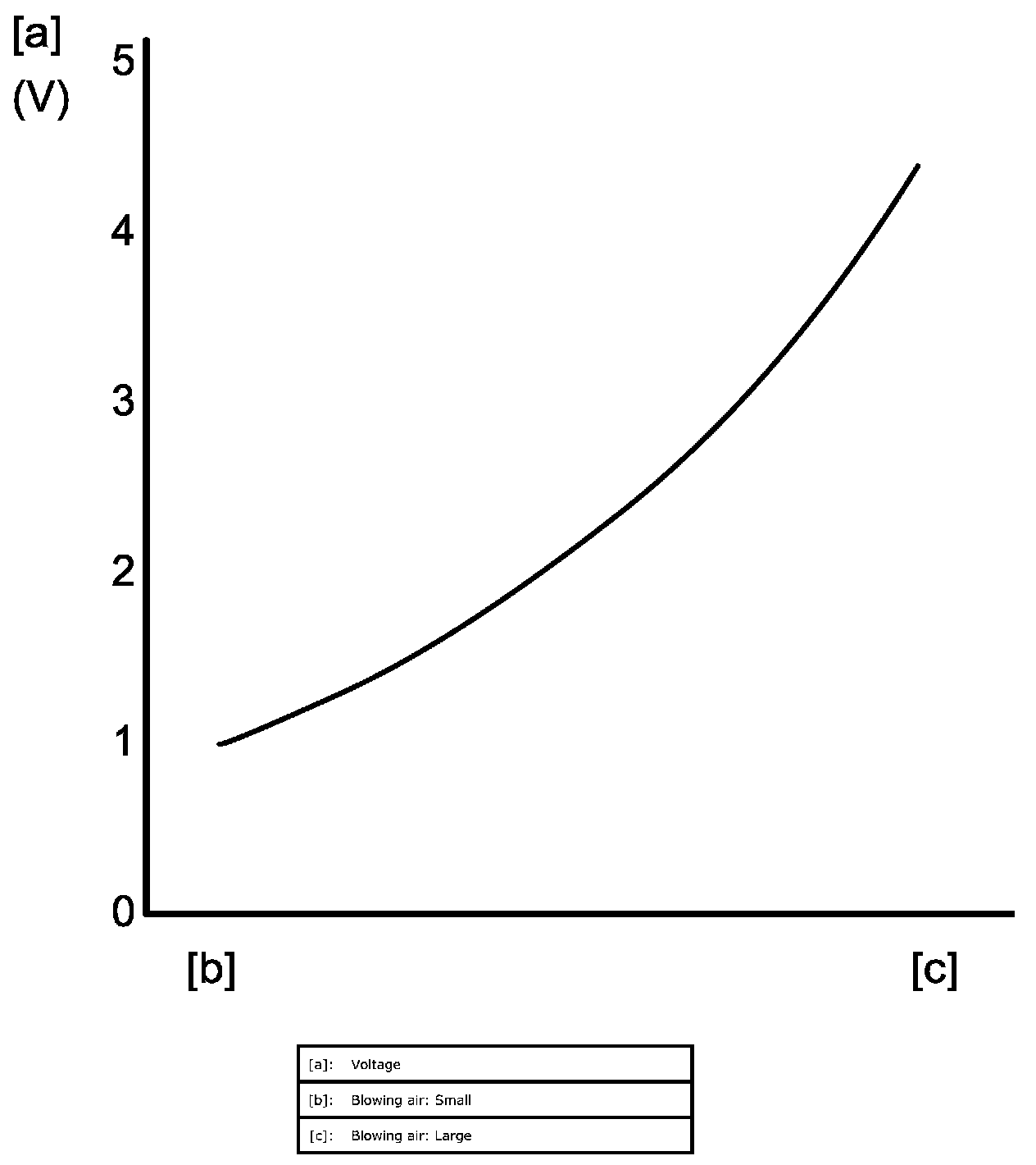 3. Check that voltage varies depending on amount of blowing air as the following graph. If faulty condition is found, replace MAF and IAT sensor.