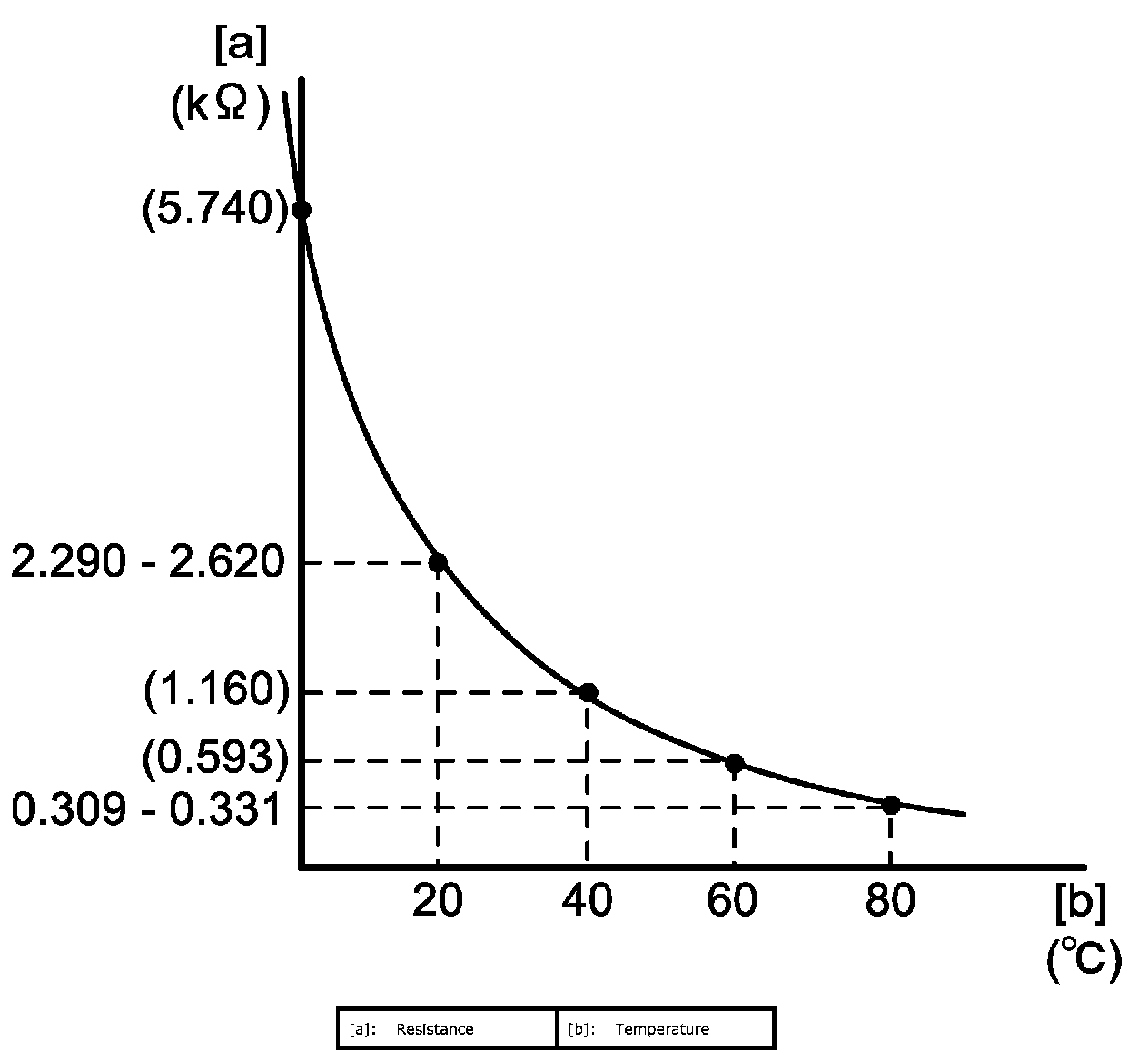 ECT (Engine Coolant Temperature) Sensor InspectionCheck that resistance between terminals "1" and "2" varies depending on engine coolant temperature.