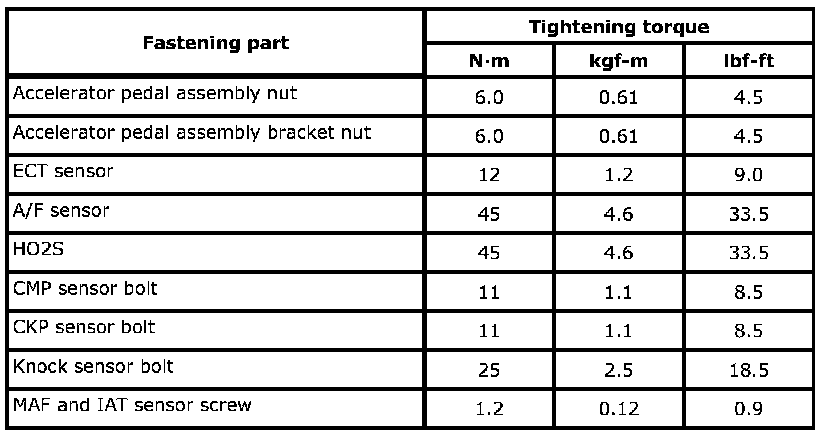 Tightening Torque Specifications