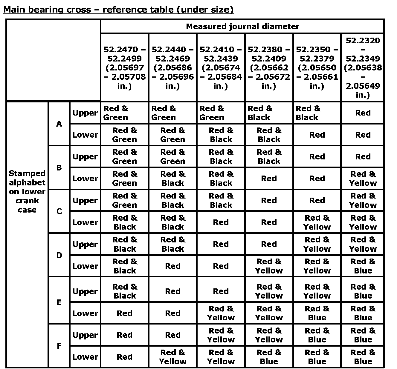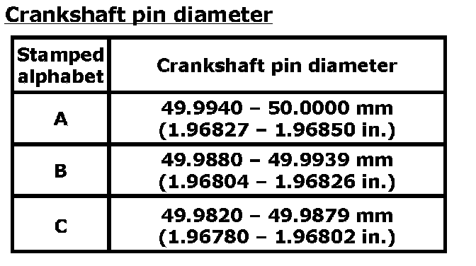 Finished crankshaft journal diameter 52.232 - 52.250 mm (2.05638 - 2.05708 in.)