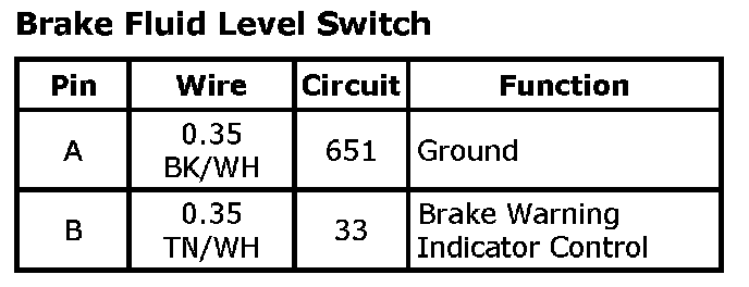Brake Fluid Level SwitchBrake Fluid Level Switch: