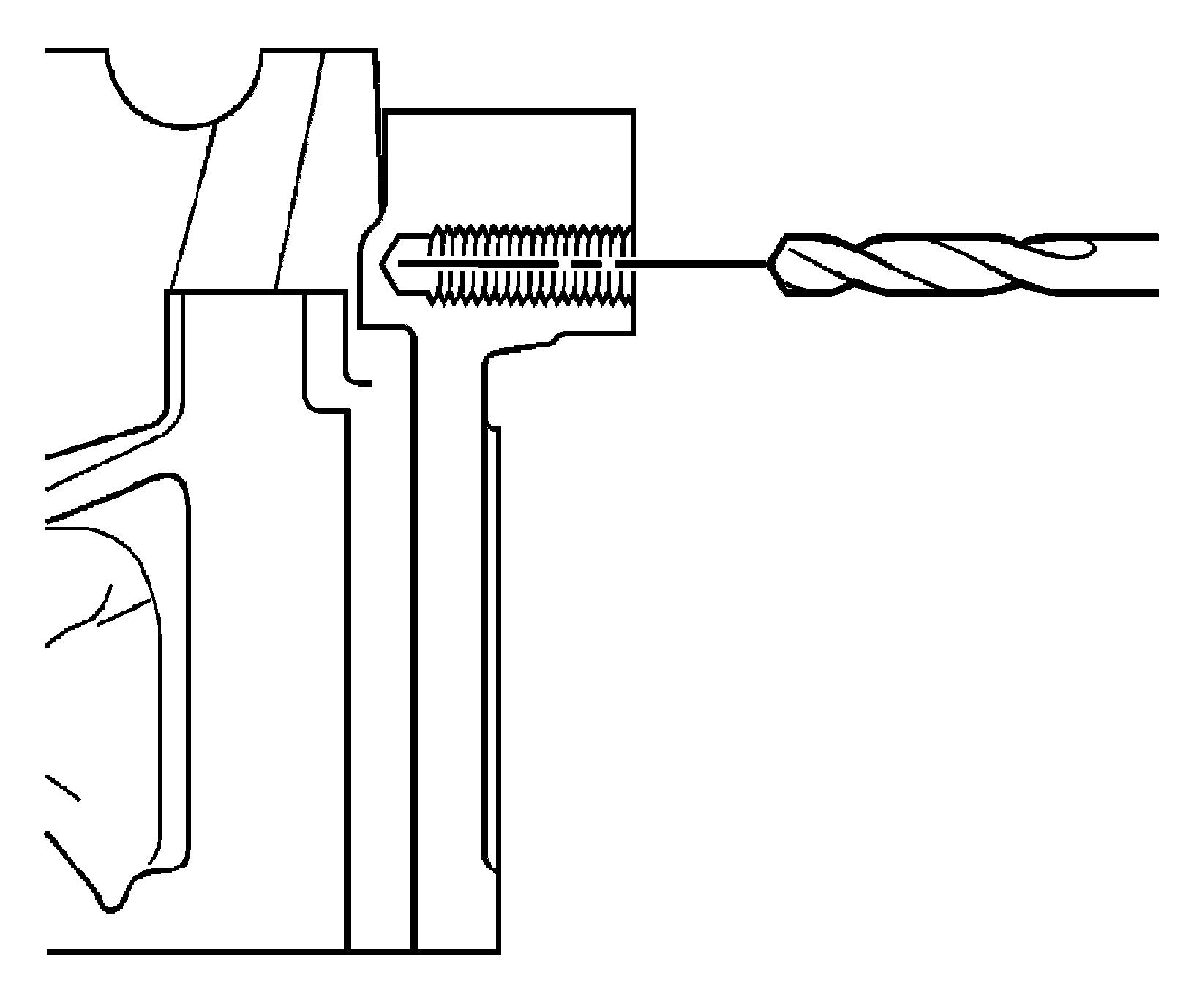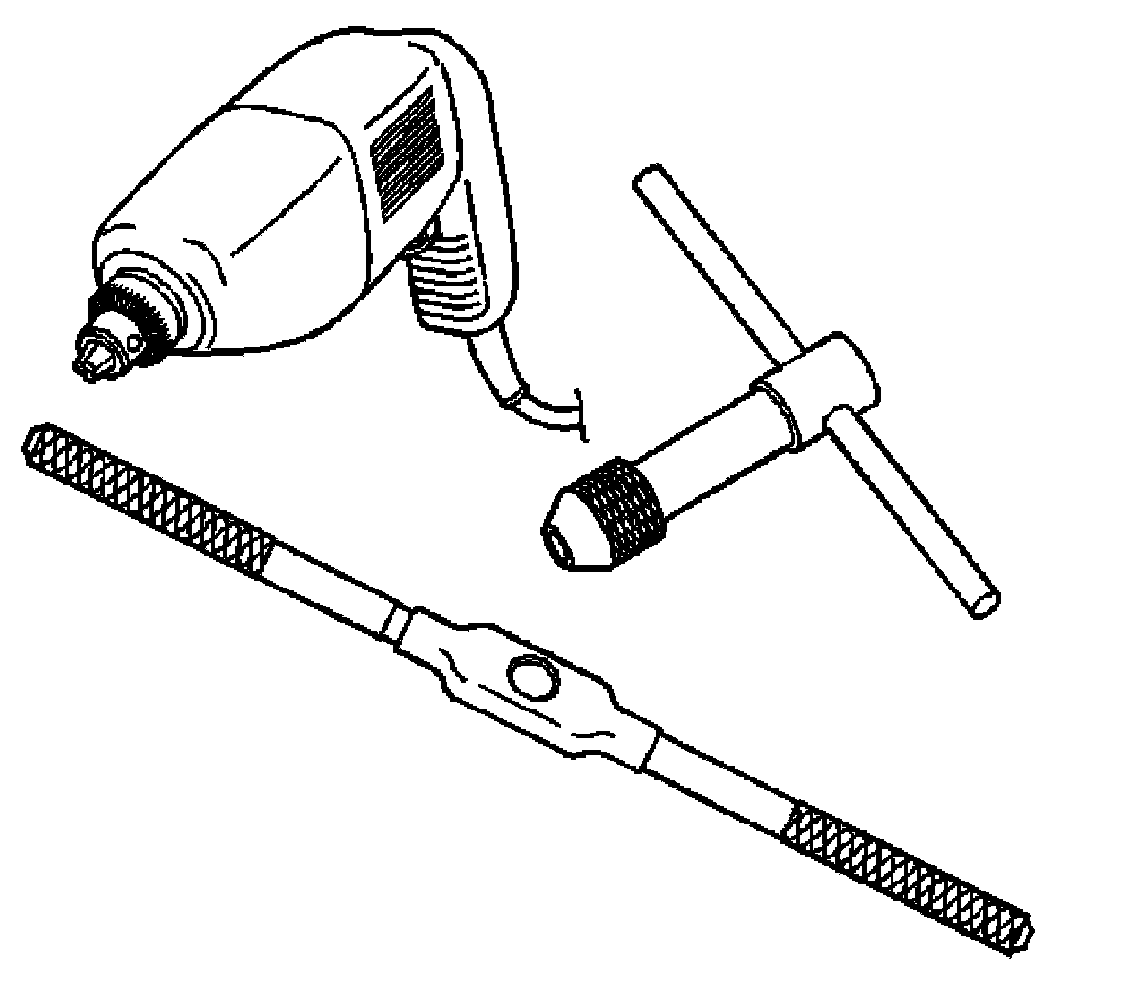 The drill bit and counter bore tool from the tool kit J 42385-700 and J 42385-2000 is designed for use with either a suitable tap wrench or drill motor. Limited access and larger hole repair may process better using a tap wrench. An extension from kit J 43965 may also be necessary to drive the thread repair tooling dependent on access to the hole being repaired. Use only a tap wrench when tapping the hole and during installation of the insert.