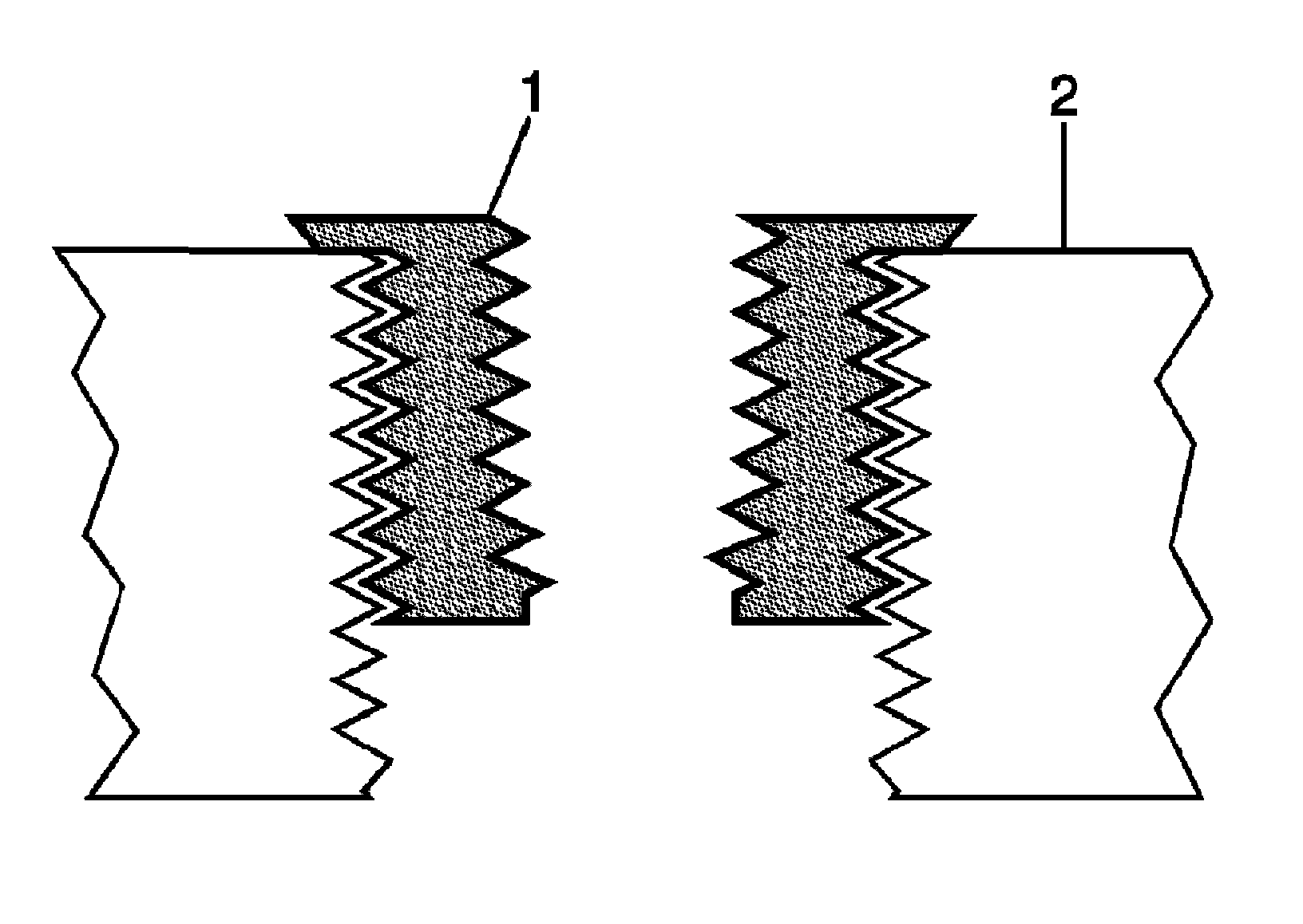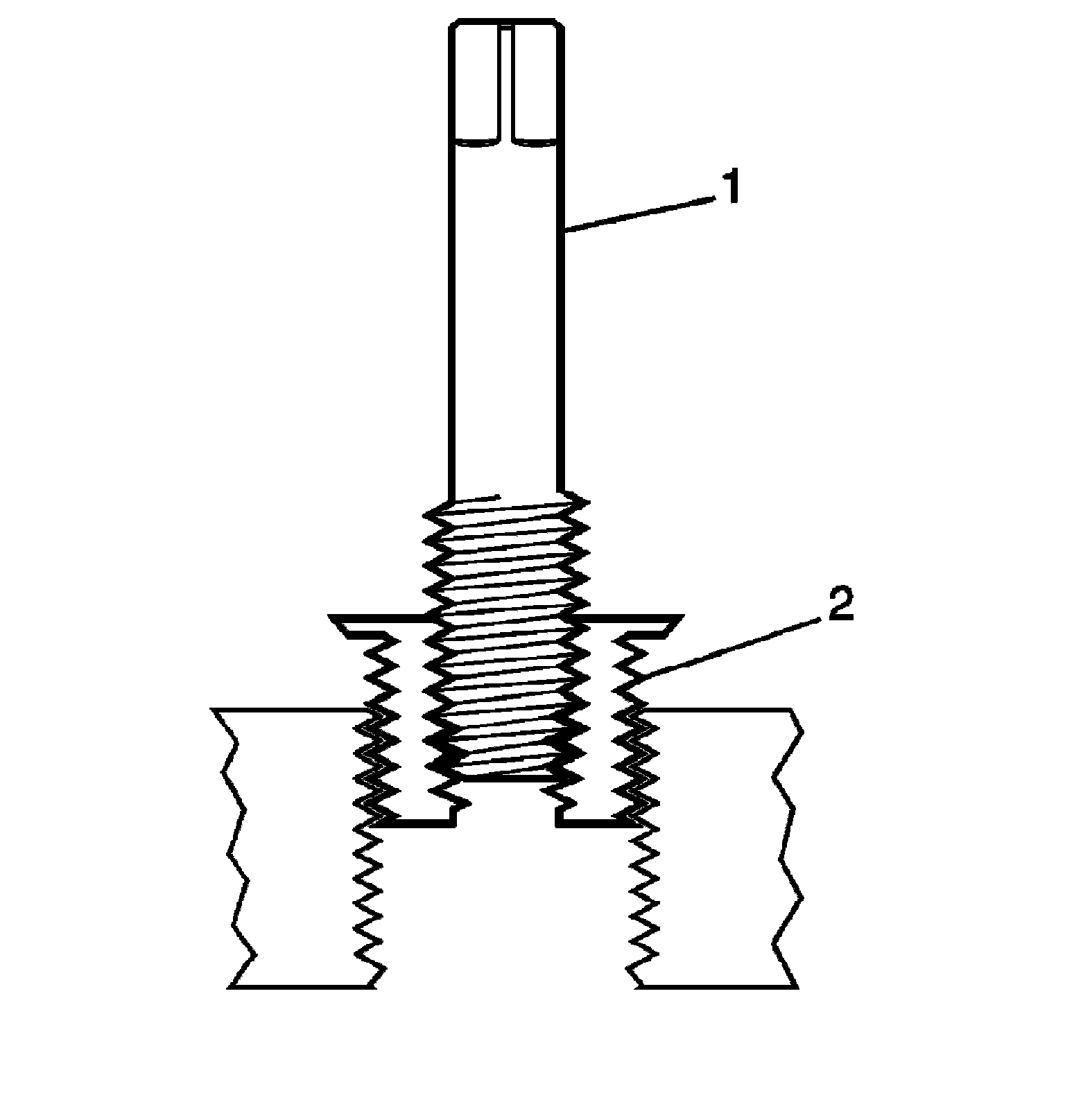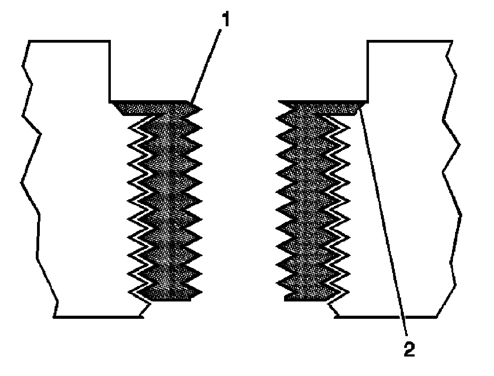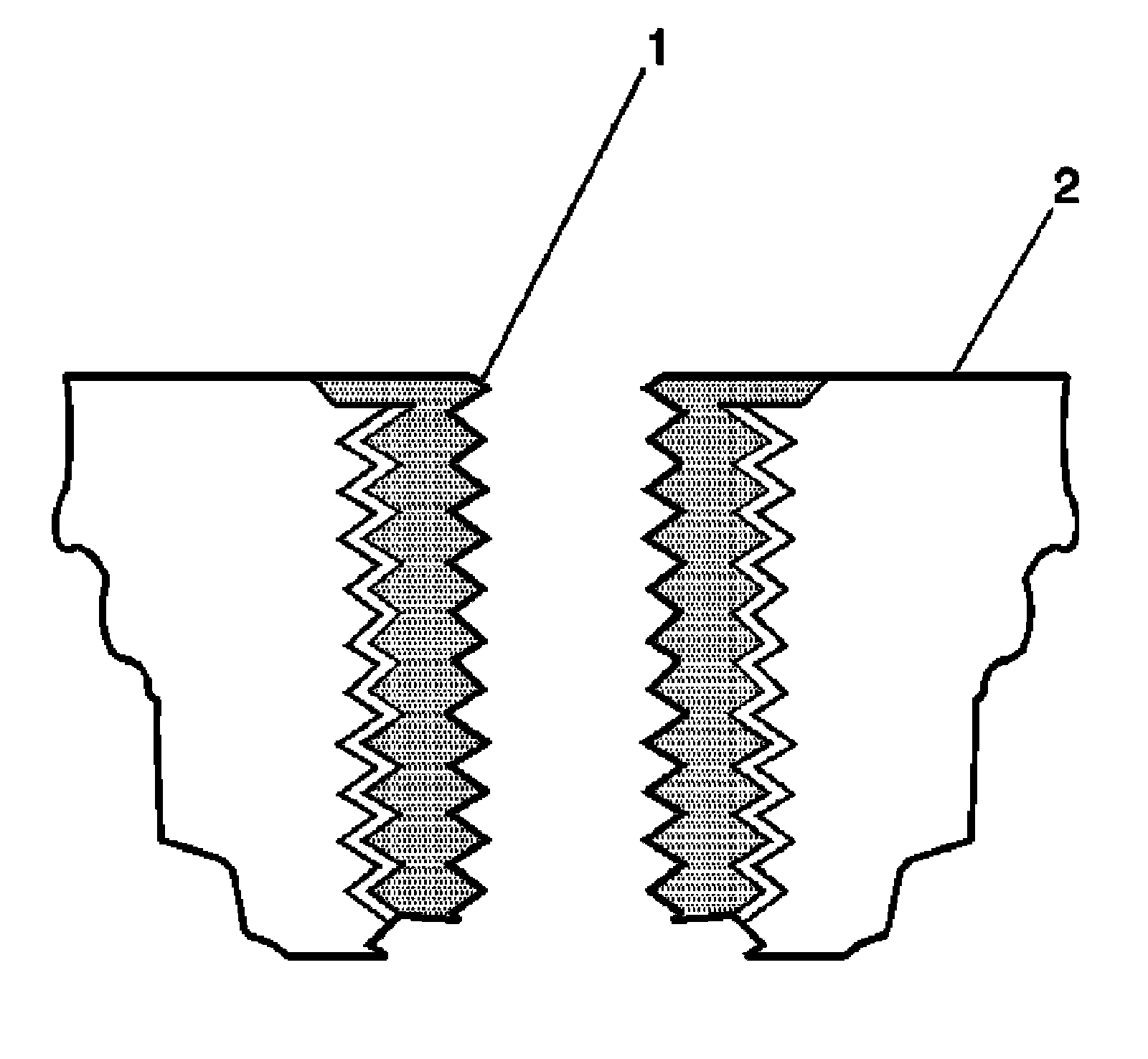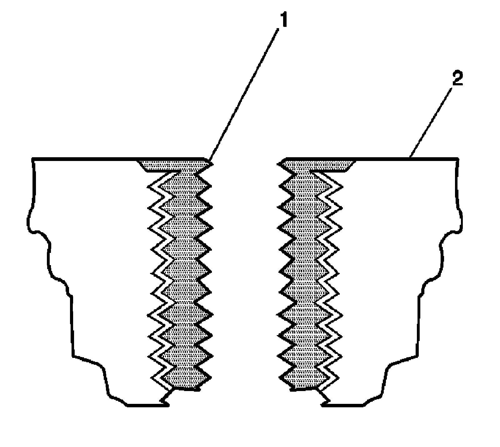 11. Apply threadlock sealant GM P/N 12345493, (Canadian P/N 10953488), J 42385-109, LOCTITE 277(R) or equivalent (1) to the insert OD threads (2).