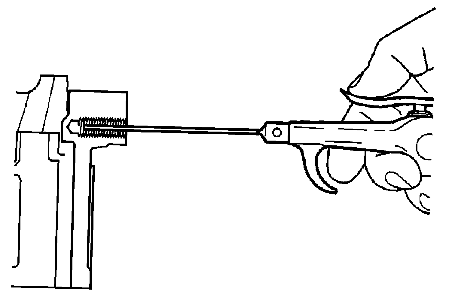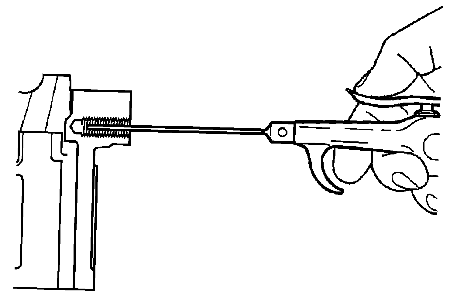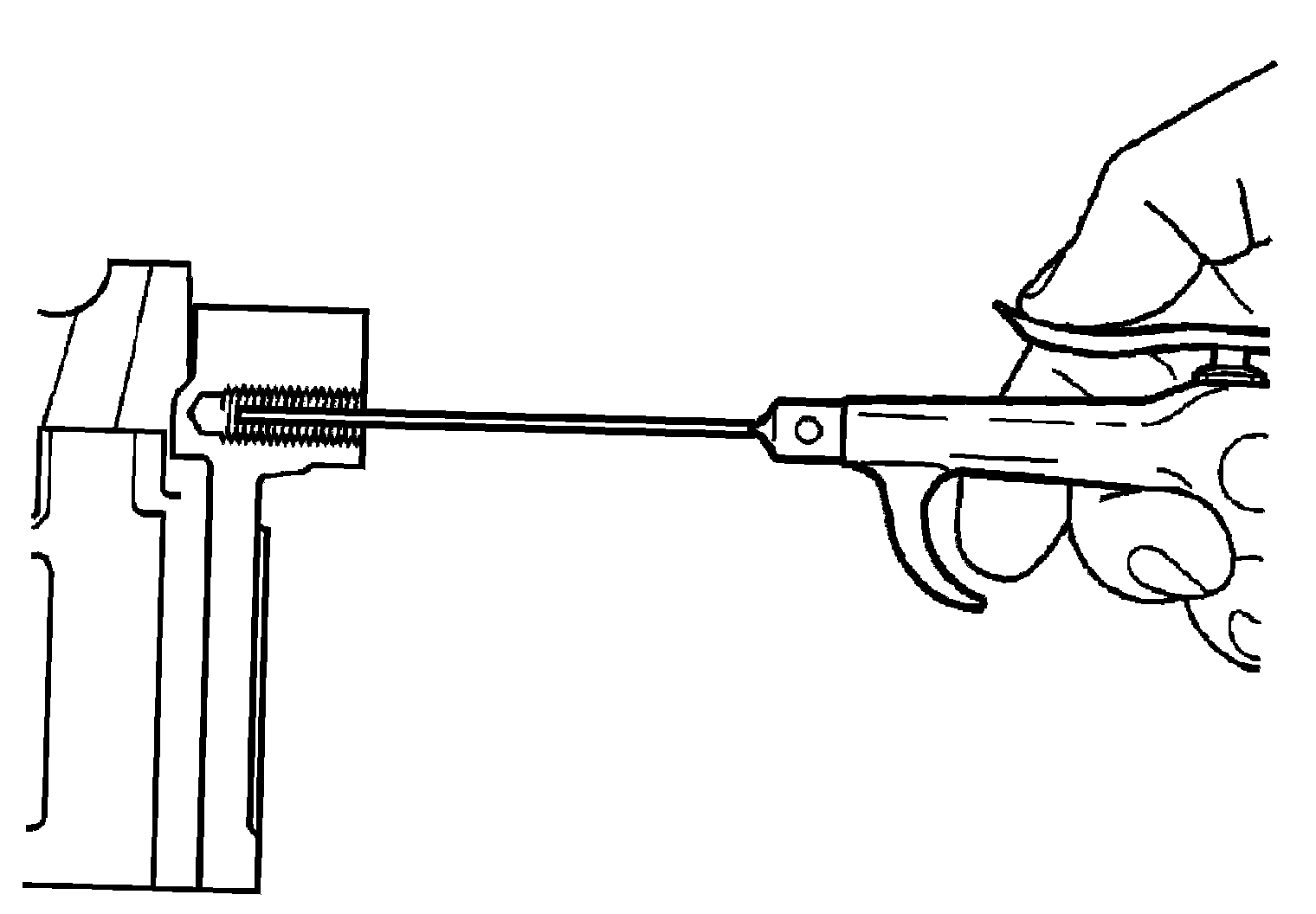6. Spray cleaner GM P/N 12346139, GM P/N 12377981 (Canadian P/N 10953463) or equivalent into the tapped hole.