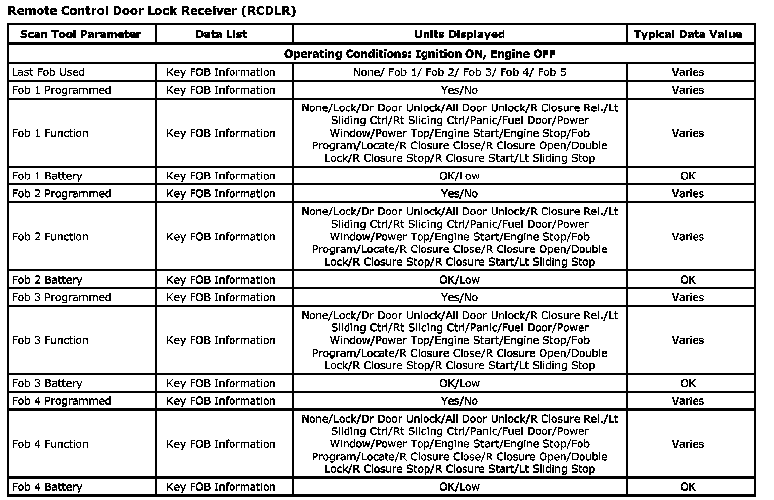 Scan Tool Data List - Remote Functions