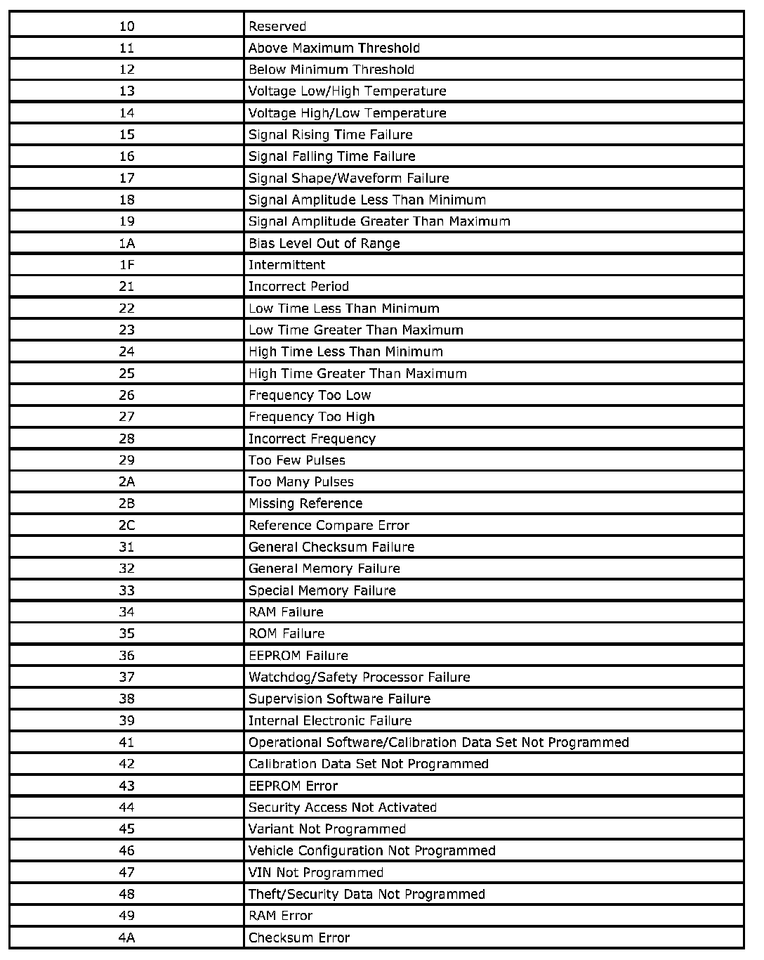 The second digit of the DTC symptom is the subtype of the DTC symptom. These subtypes and their categories, together with their definitions, are given in the following table. DTC symptom 00 is a special case. If 00 displayed, only the base code number and its description apply. Information regarding the fault will be provided in the code setting criteria.