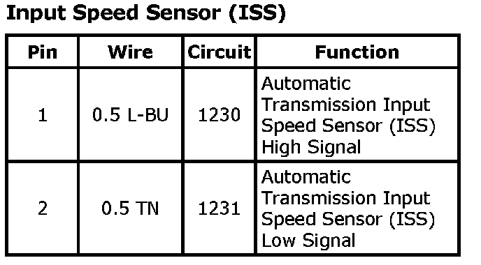 Input Speed Sensor (ISS)Input Speed Sensor (ISS):