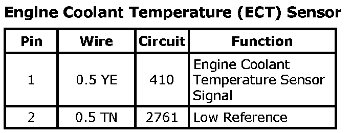 Engine Coolant Temperature (ECT) SensorEngine Coolant Temperature (ECT) Sensor: