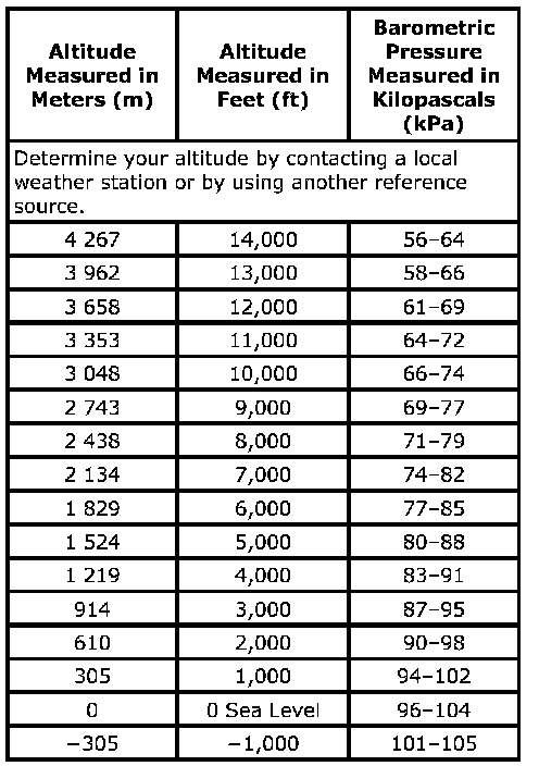 Altitude Versus Barometric Pressure:
