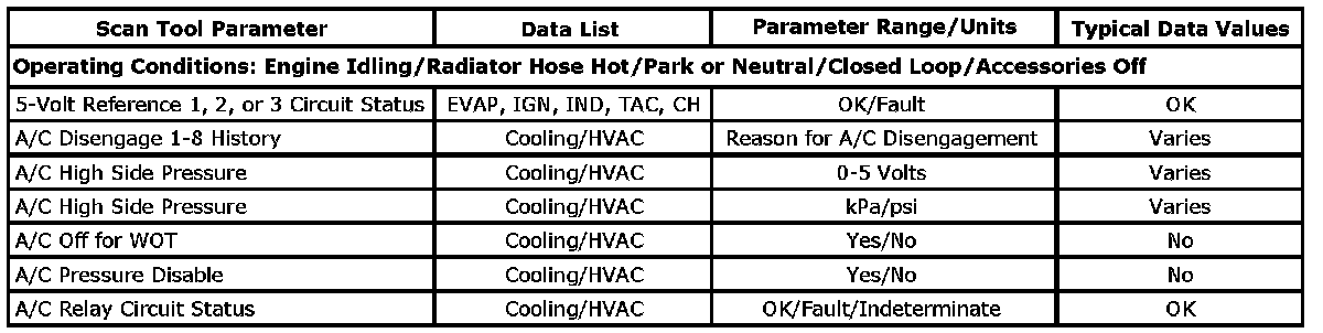 Scan tool values from an engine that is operating correctly may be used for comparison with the engine you are diagnosing. The Engine Scan Tool Data List represents the values that would be seen on a normal operating engine.
